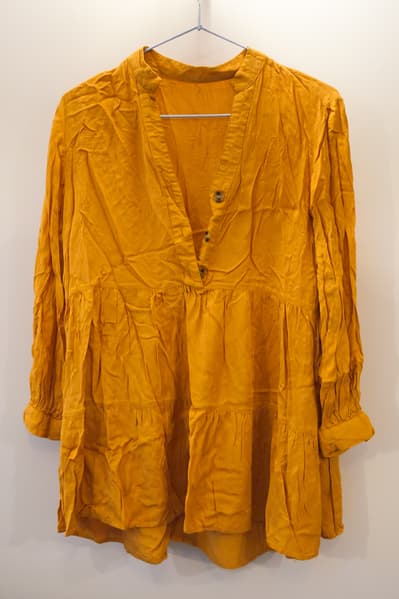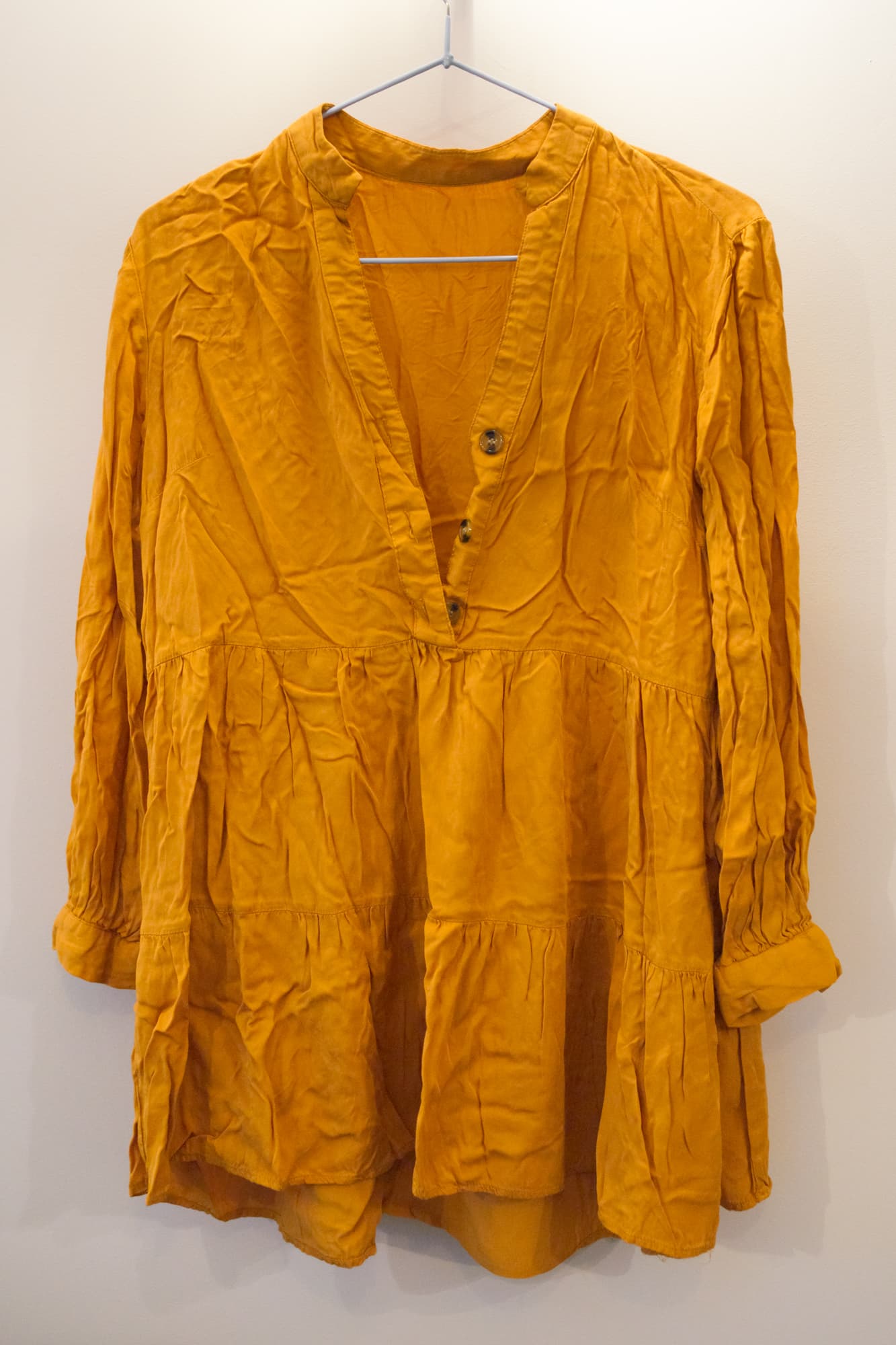 Платье из тонкой ткани легко мнется само по себе, но тут мы постарались дополнительно: после стирки скомкали его и оставили сушиться в таком виде в ожидании теста.