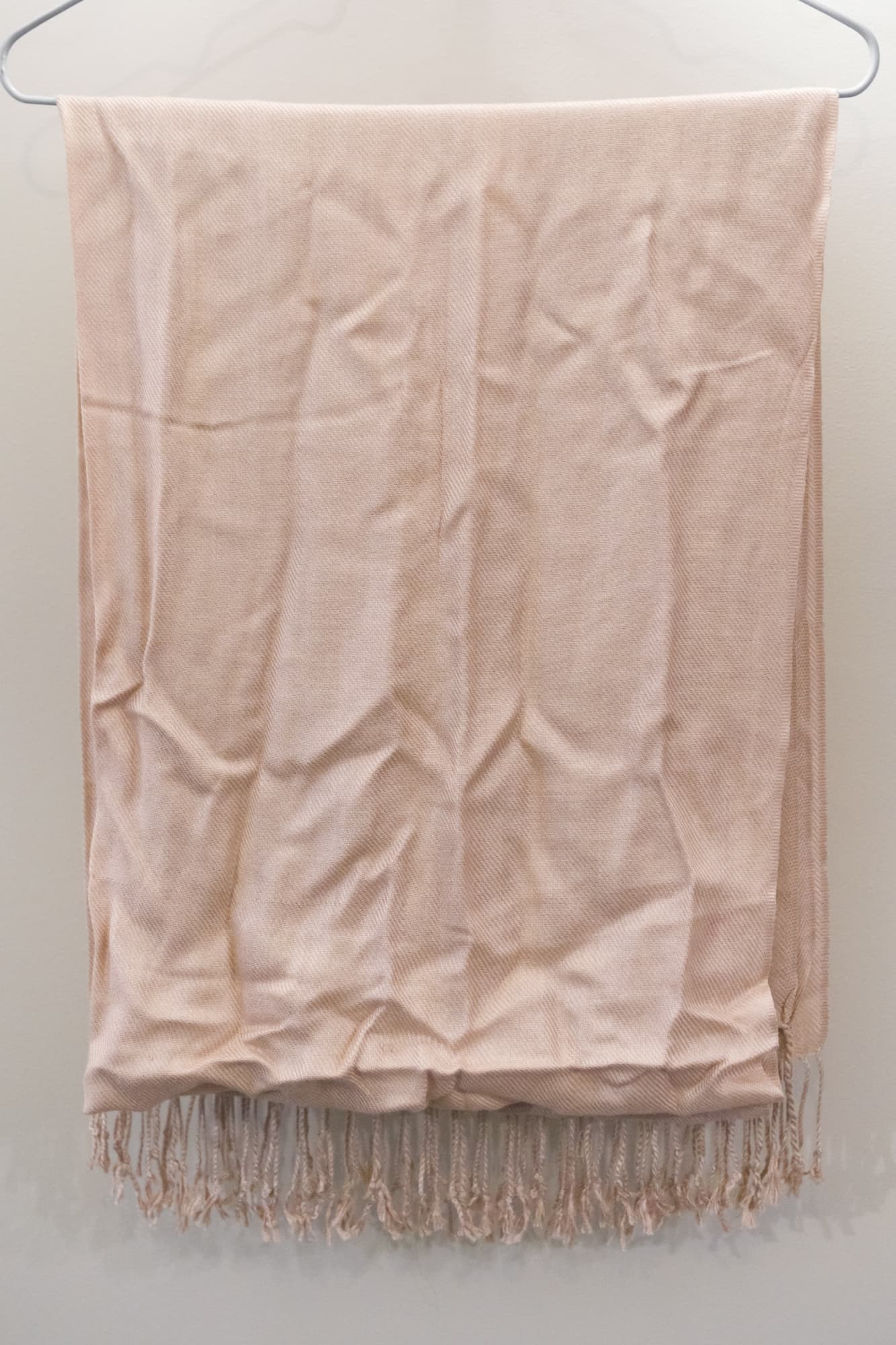 Следующим под паровую обработку попал мятый и давно забытый в шкафу палантин из синтетики.