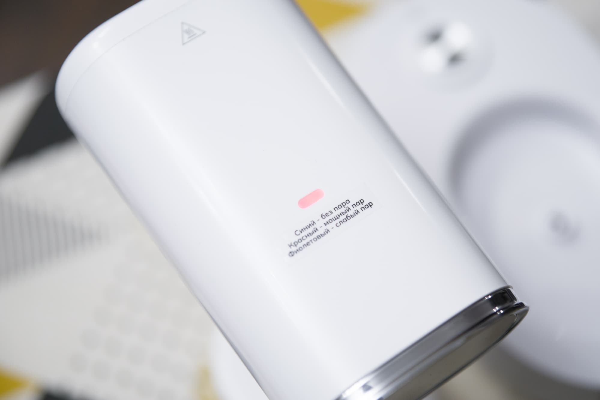 Мы внимательно прочитали руководство и обнаружили ошибки. Мощность прибора (как и на упаковке) указана в 1800 Вт, тогда как отметка на корпусе меньше — 1600 Вт. Какая максимальная мощность на самом деле, мы расскажем ниже, в разделе об измерениях. Другая неточность касается описания процесса управления. В тексте перепутаны цвета индикатора, показывающего состояние устройства при нагреве. Ориентироваться стоит только на наклейку, на корпусе самого устройства. Были найдены и явные неточности в переводе — в ряде разделов отпариватель зовется «ручной паровой щеткой».