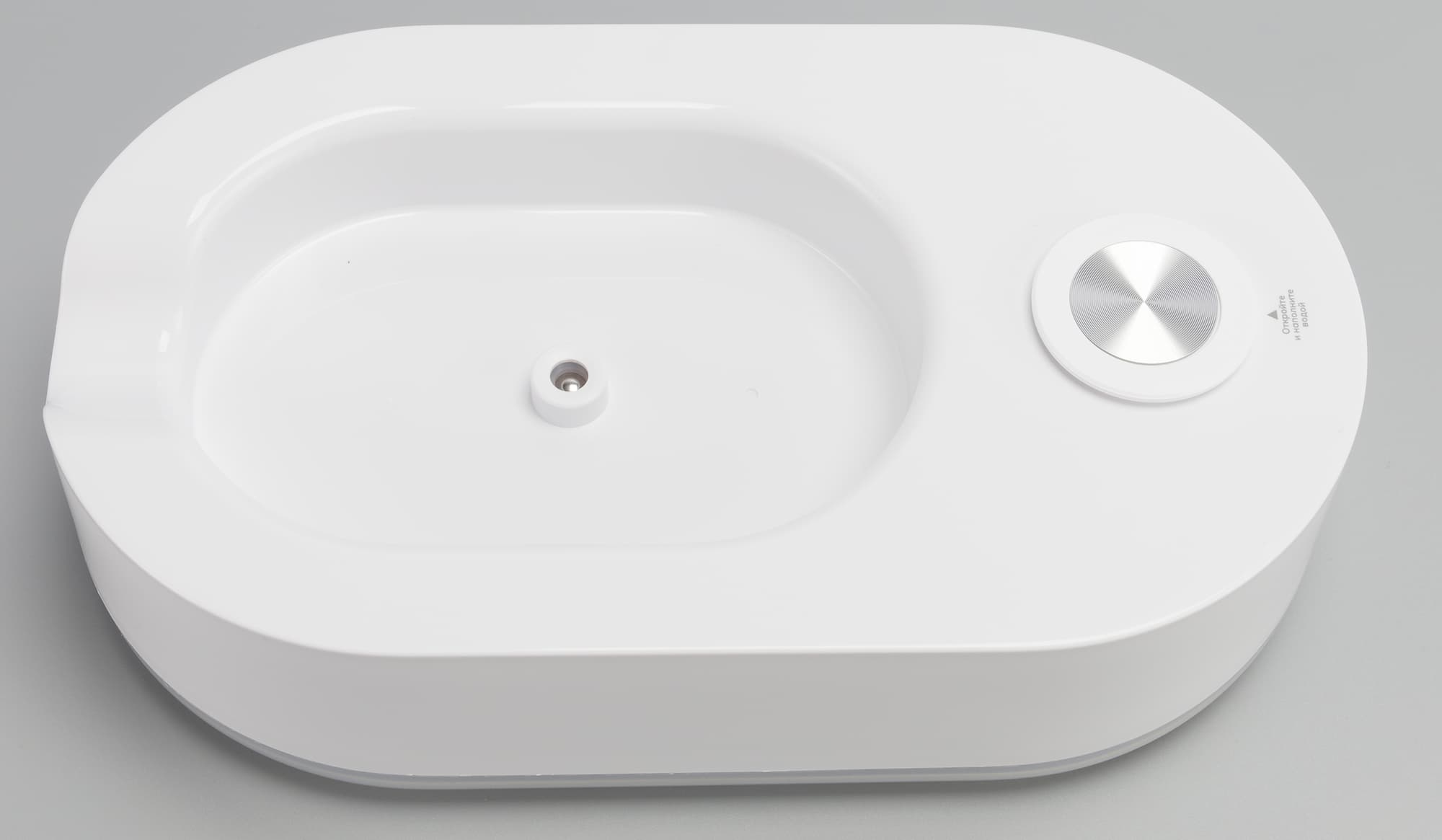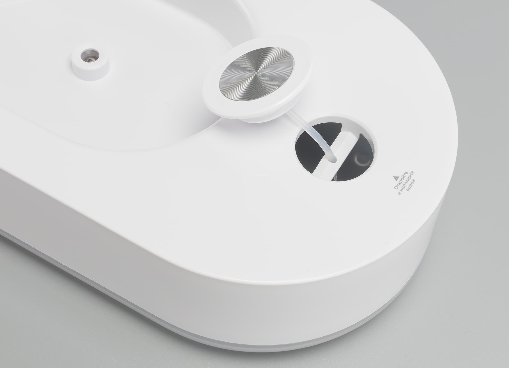 В бак помещается ровно 1 литр, как и заявлено в документации. Вода в емкость заливается через отверстие, закрытое круглой крышкой. Внутри по центру находится перекладина, которая немного мешает заливу воды, но привыкнуть можно.
