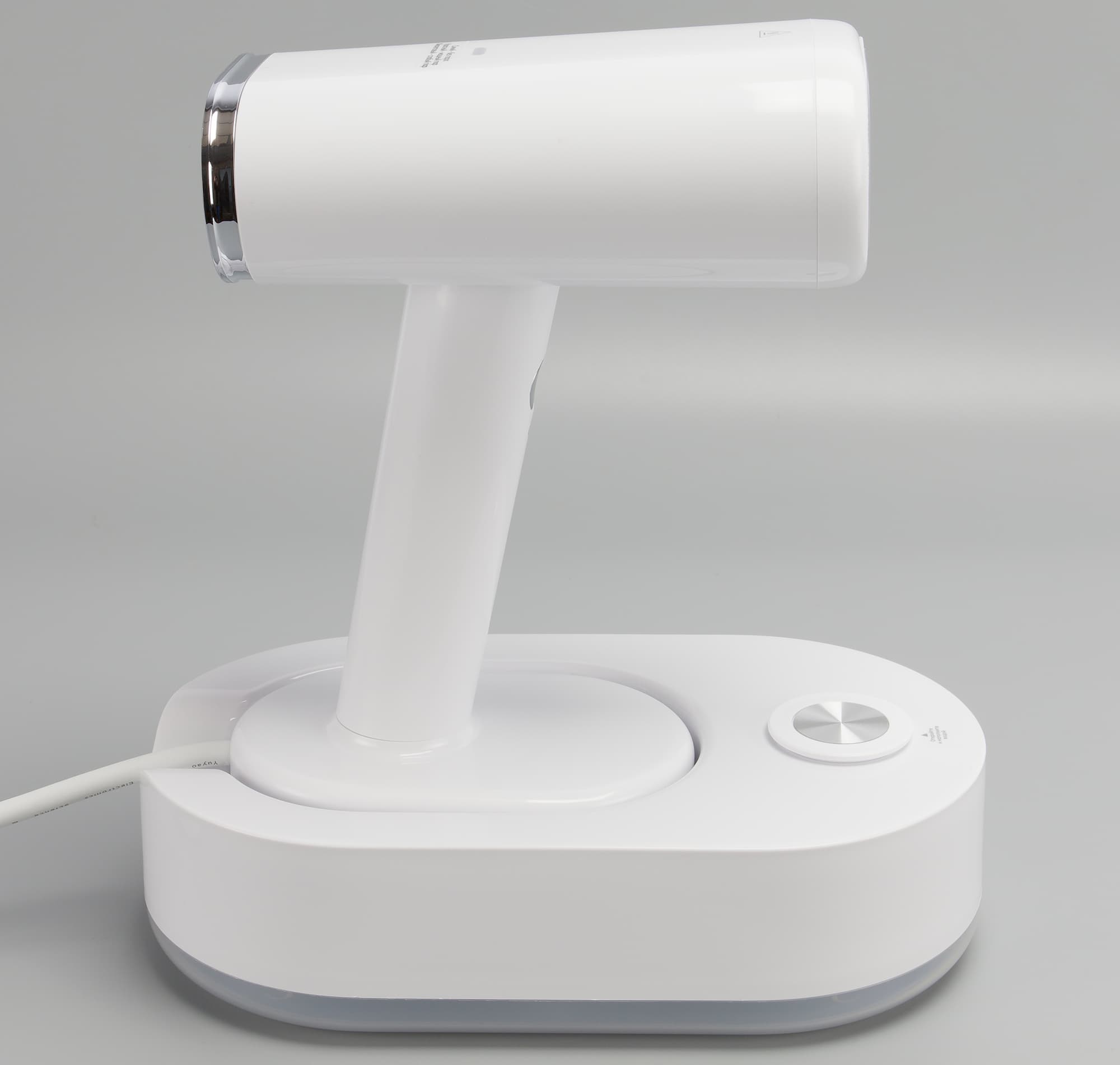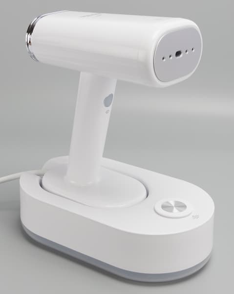 Отпариватель комфортно держать в руке, он умеренно тяжелый и при длительной обработке изделий рука не устает. Конструкция прибора удобна, но в процессе работы мы обратили внимание на небольшой люфт крепления рукоятки к основанию. При чрезмерно резком вытягивании отпаривателя с базы (а мы помним, там магнит) рукоятка может отсоединиться от своего основания, чего по идее происходить не должно.