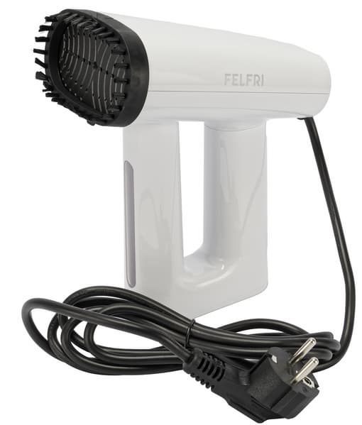 Felfri FGS-009 — компактный и мобильный отпариватель, который быстро разогревается и обеспечивает мощный равномерный поток пара. Он справляется с различными тканями и позволяет работать как в вертикальном, так и в горизонтальном положении, а функция сухой глажки делает его универсальным для домашнего использования.
