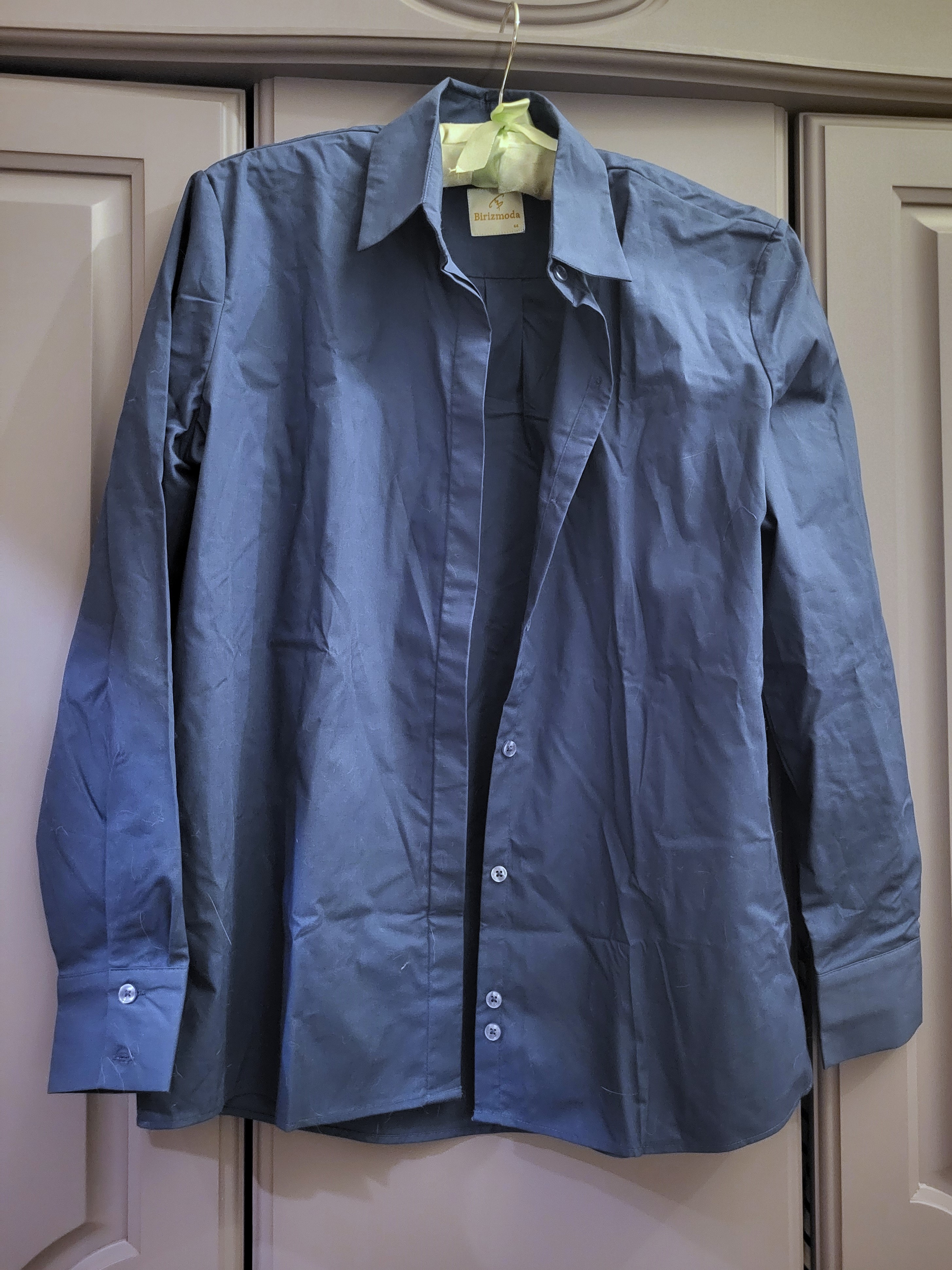 Смятая хлопковая ткань средней плотности хорошо реагирует на горячий пар: на максимальной мощности она разглаживается быстро, и изделие приобретает аккуратный вид (фото немного отличаются по цвету, но это одна и та же рубашка).