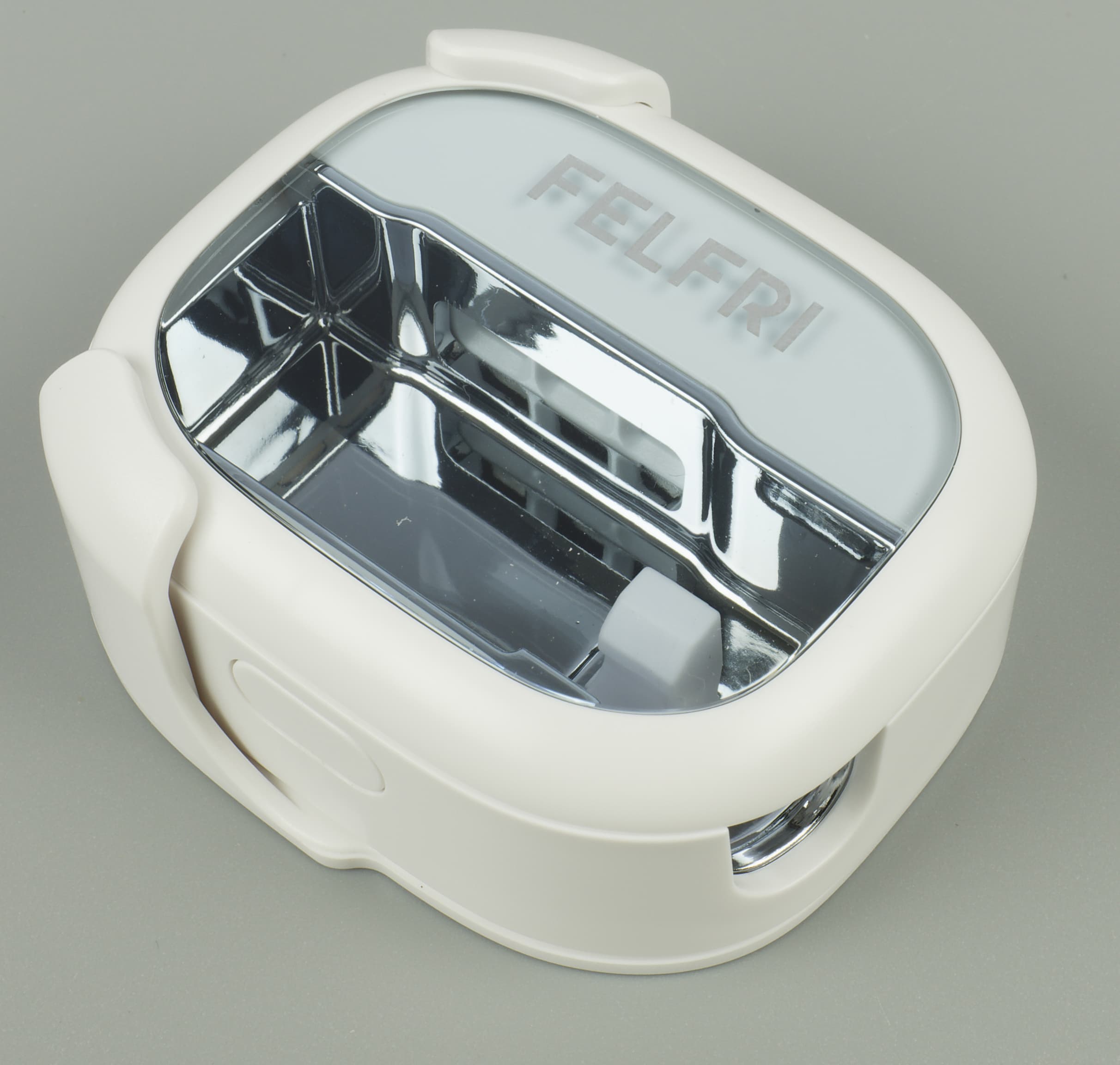 Выглядит он как компактная пластиковая коробочка с прозрачным окошком-крышкой.