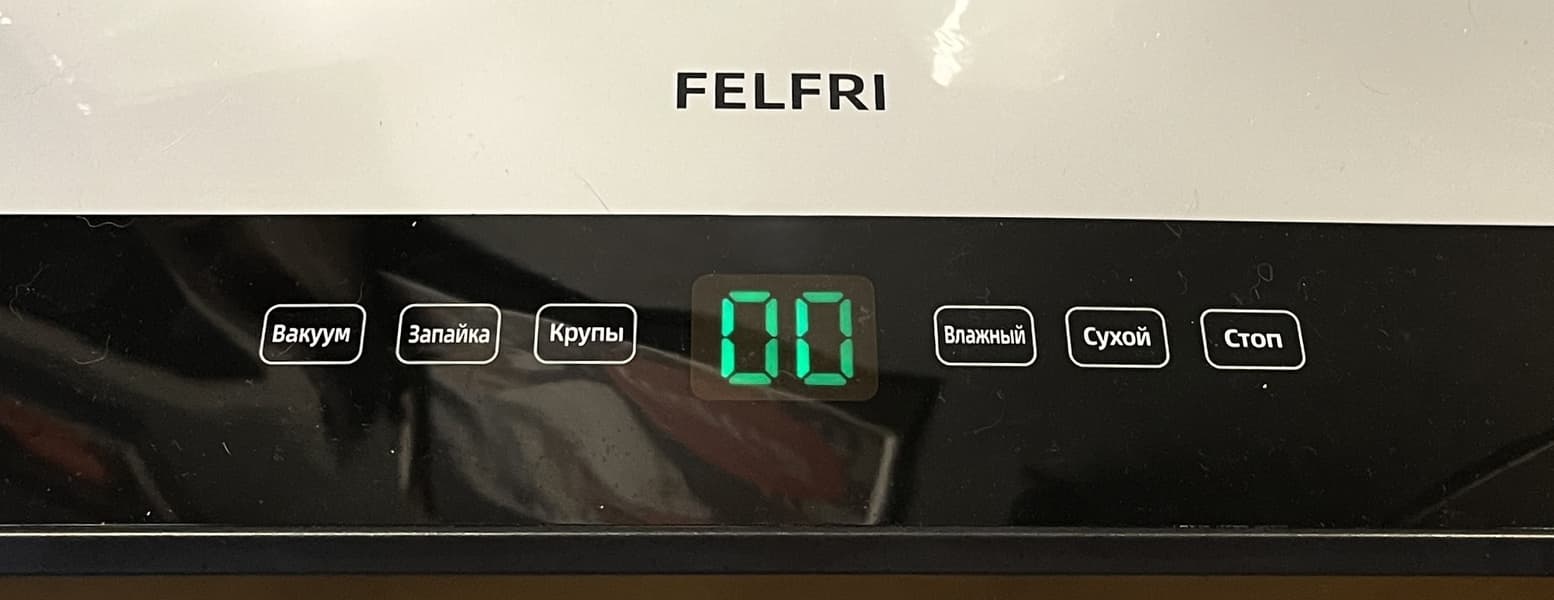 Пока вакууматор находится в режиме ожидания, на дисплее всегда горят значения «00». При выборе любой из программ на дисплее отображается отсчет в секундах.