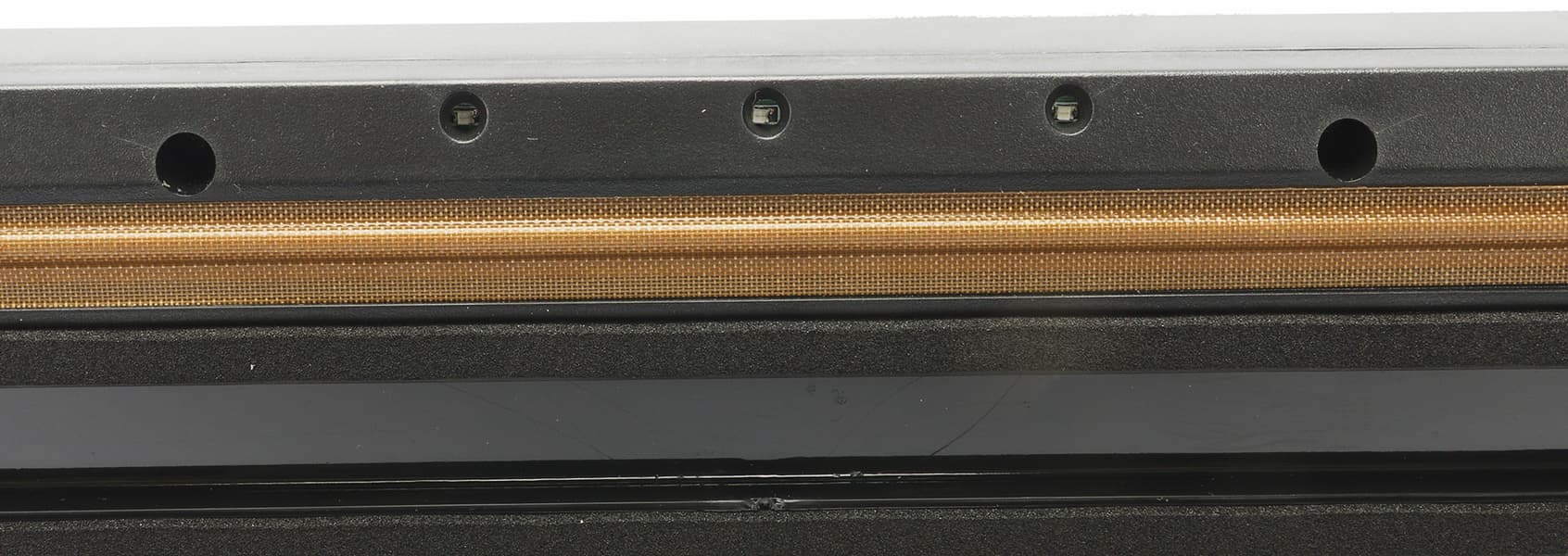 Из инноваций мы обнаруживаем три УФ-светодиода на краю откидывающейся части корпуса, сразу за термолентой. По идее они должны обрабатывать место закрытия шва при нагреве термоленты, но по факту они находятся ближе «к выходу» чем разрез пакета и даже шов, поэтому их назначение не совсем понятно.