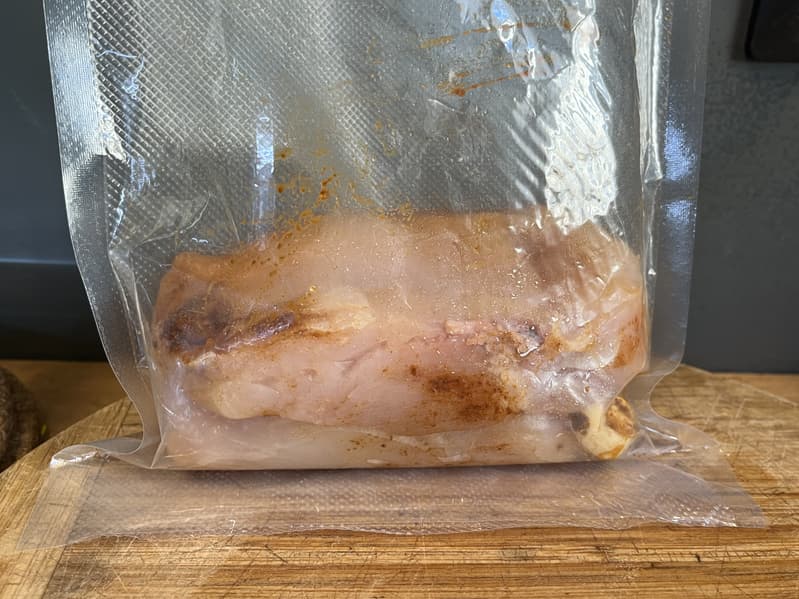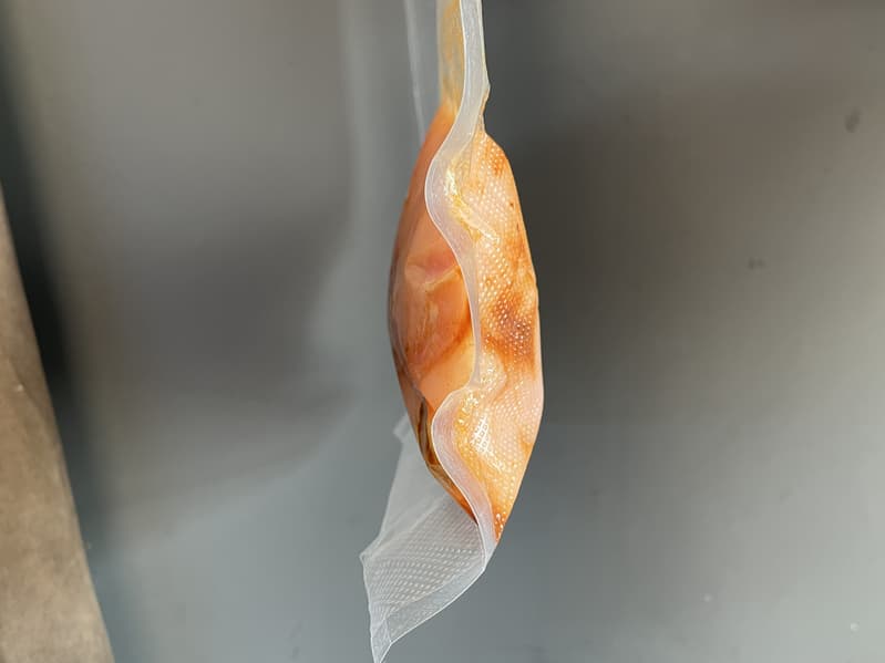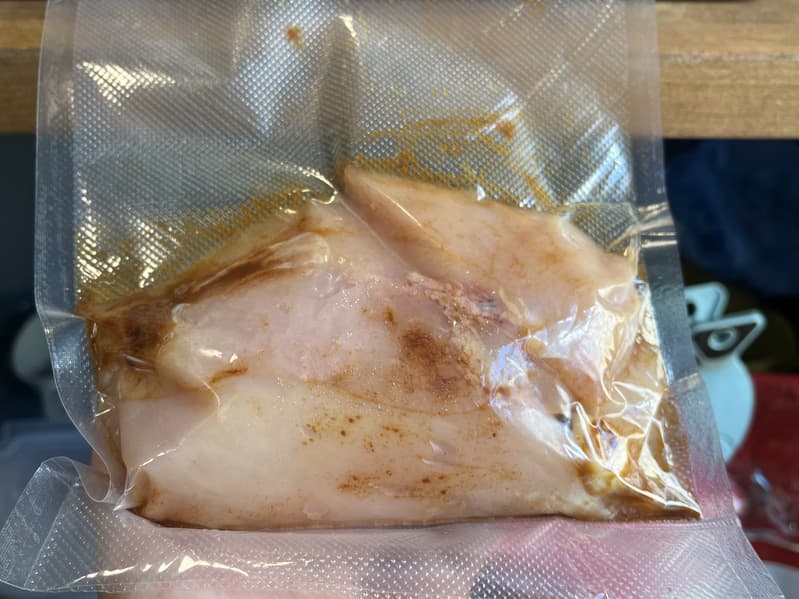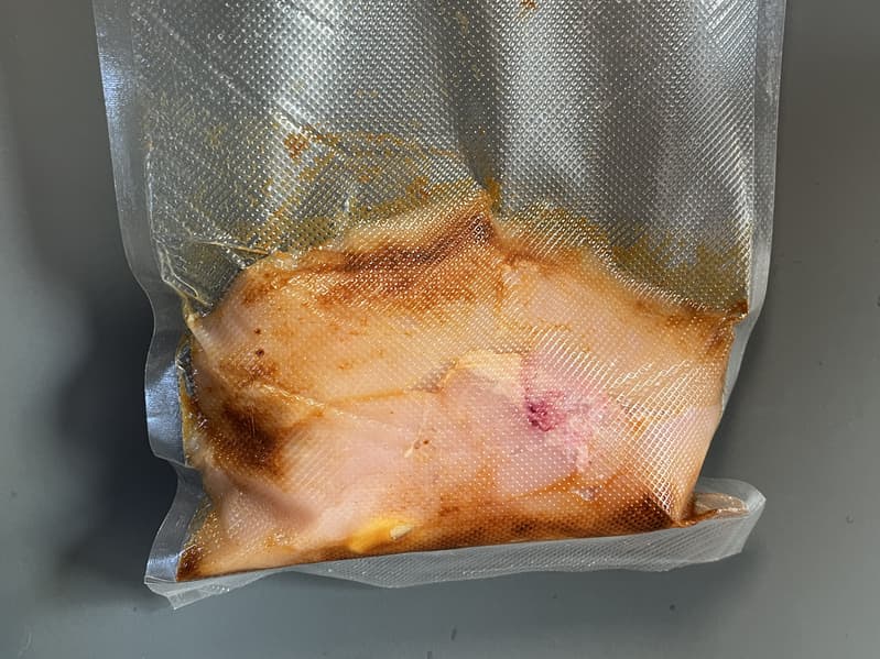 Чтобы проверить режим влажной вакуумации, мы выбрали сырую куриную грудку.