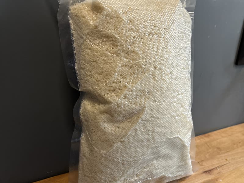 Прибор отлично выкачал воздух из пакета, сформировав из панировочных сухарей чуть ли не кирпич.