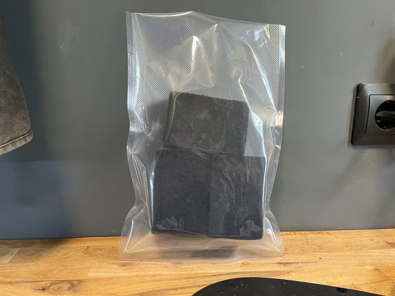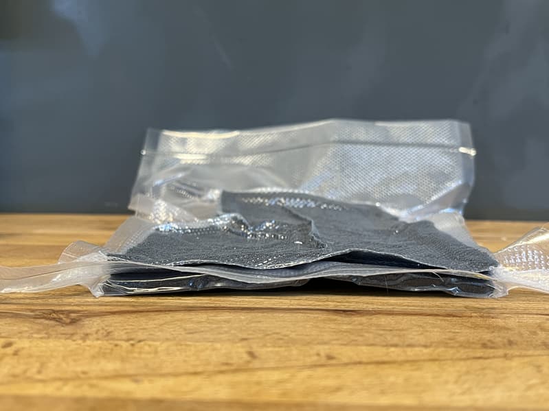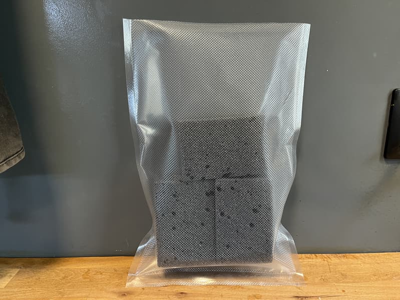 Для того, чтобы испытать «Сухой» режим, мы решили вакуумировать новые губки для мытья посуды.