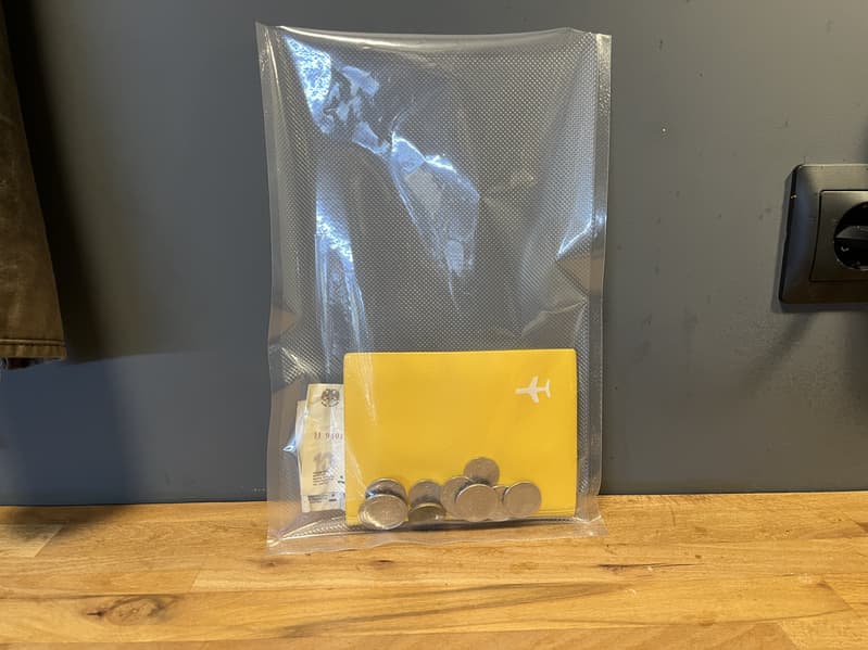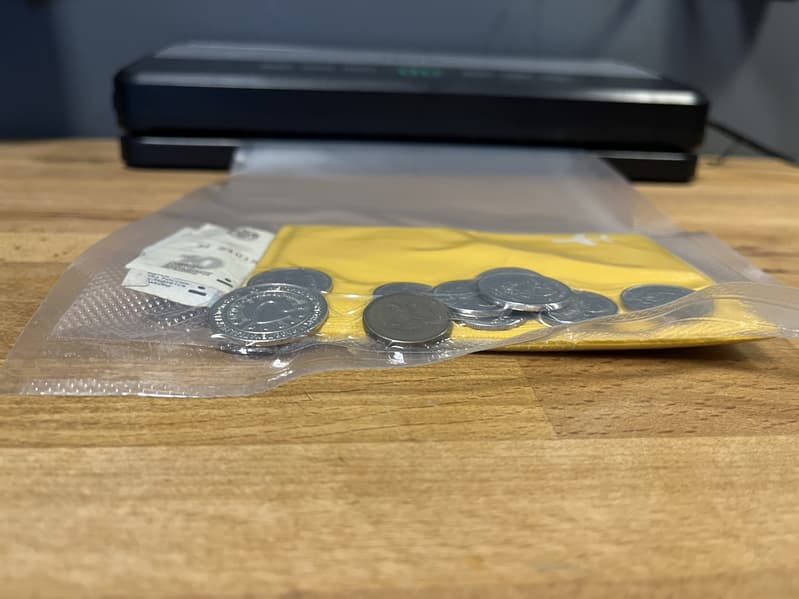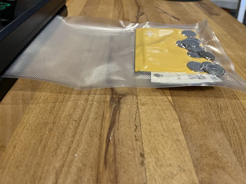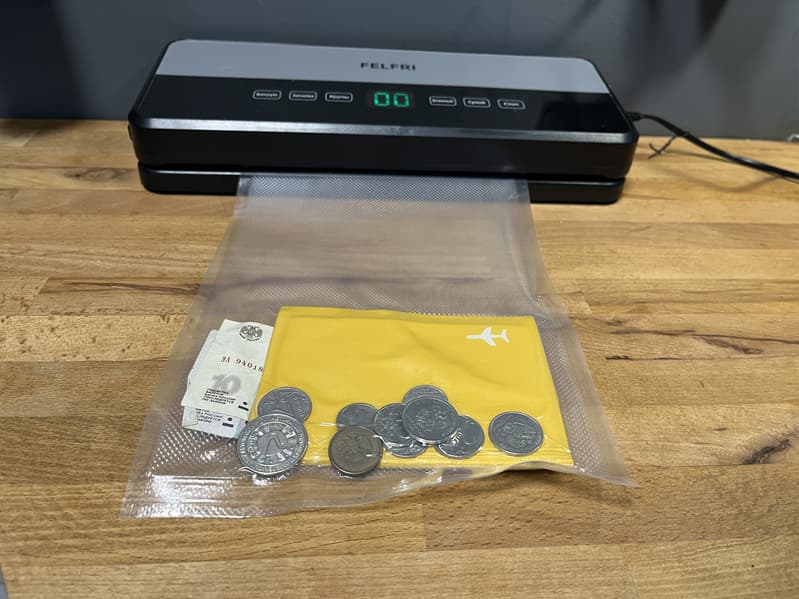 Чтобы проверить режим ручного управления вакуумацией и использоваться отдельную функцию запайки, мы решили взять документы и наличные деньги.