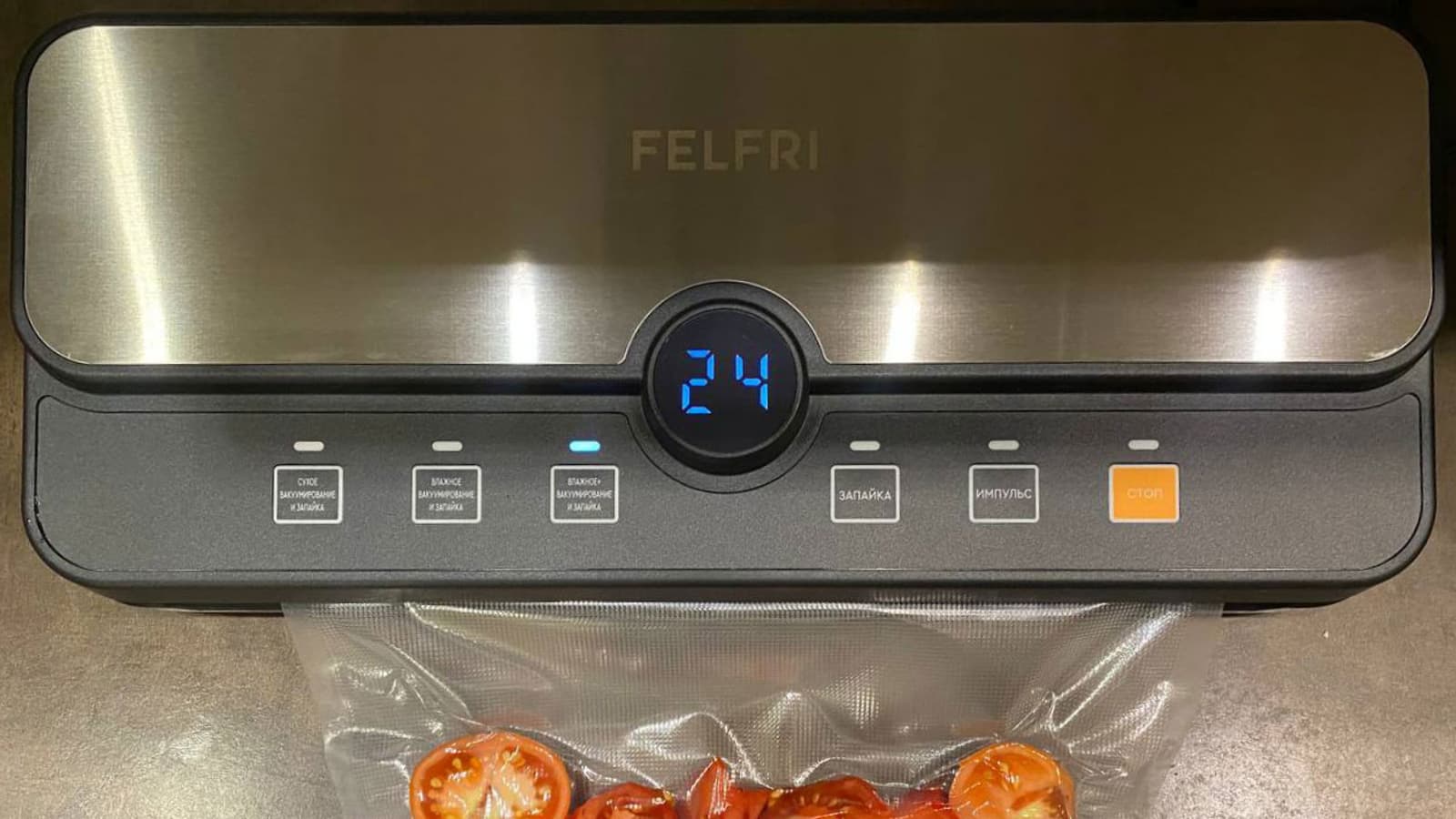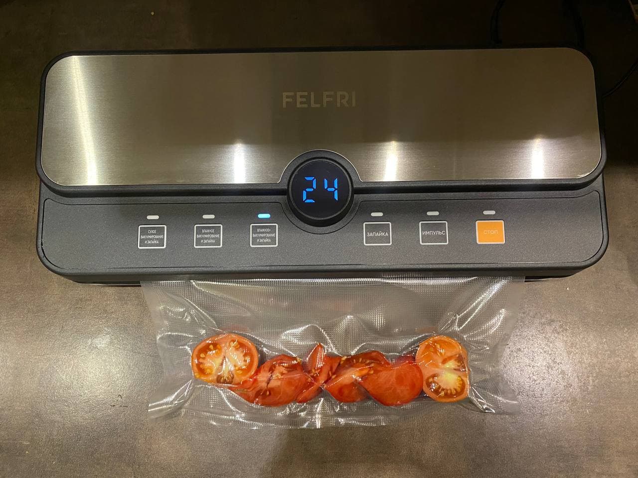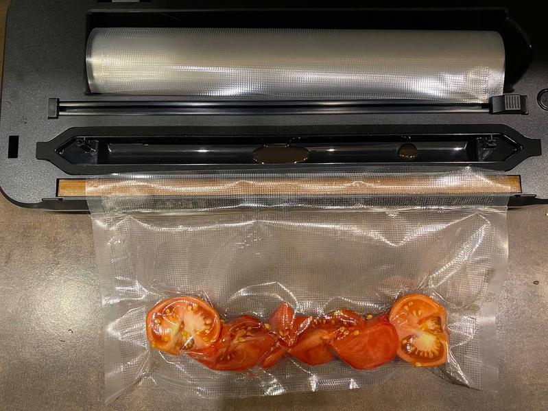 При вакуумировании важно учитывать консистенцию продукта. Помидоры бывают более плотные (с крепкой кожурой) и мягкие, сочные. Мы решили проверить работу Felfri именно на мягких, сочных помидорах.