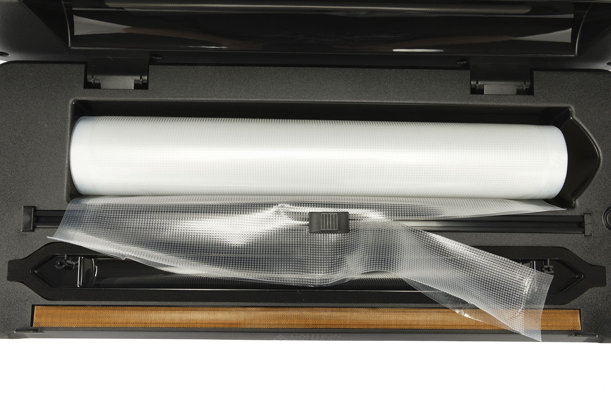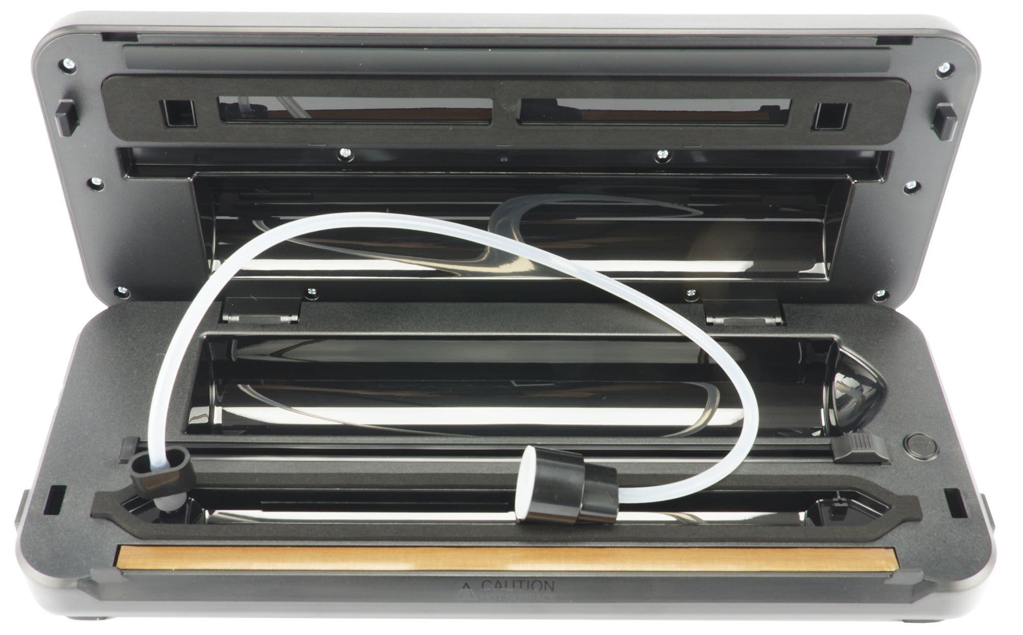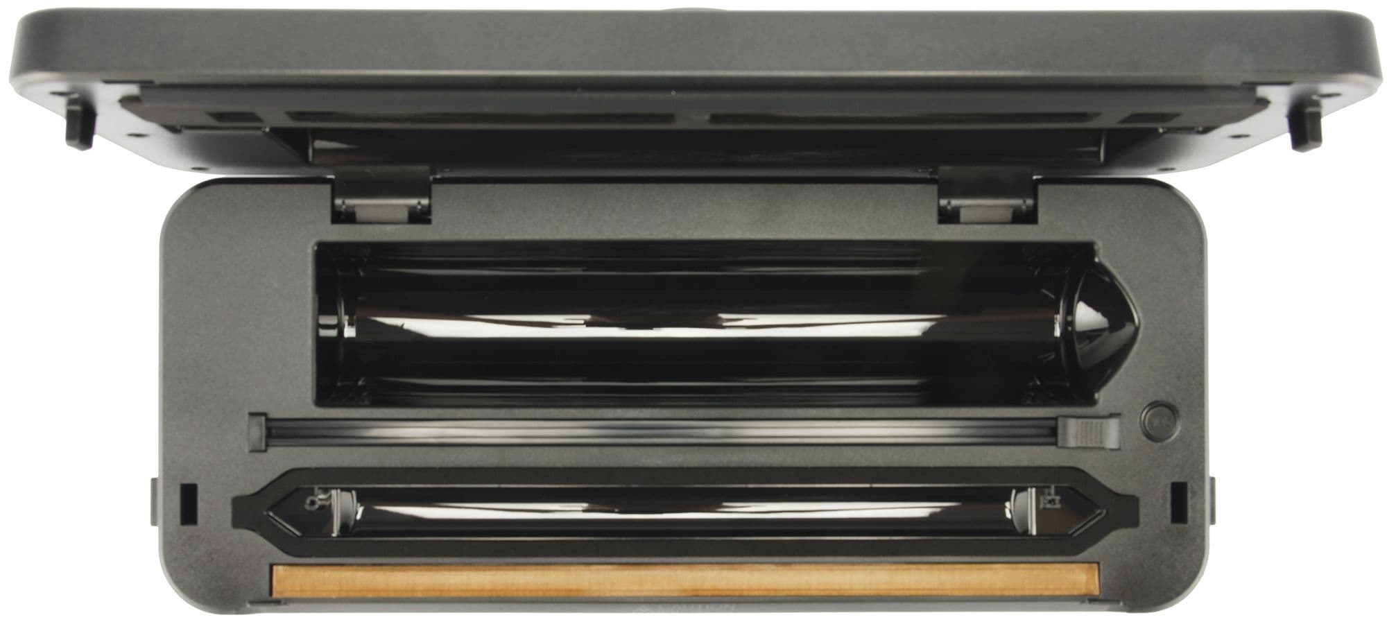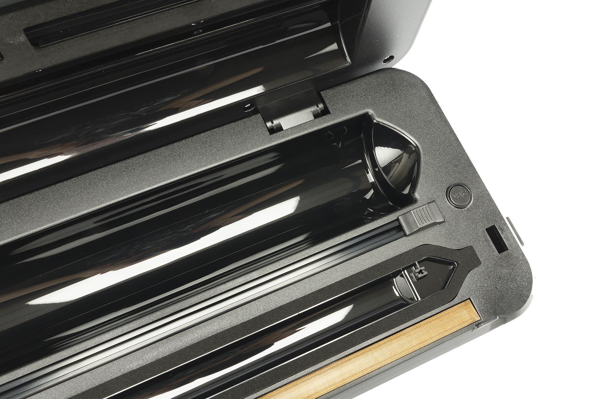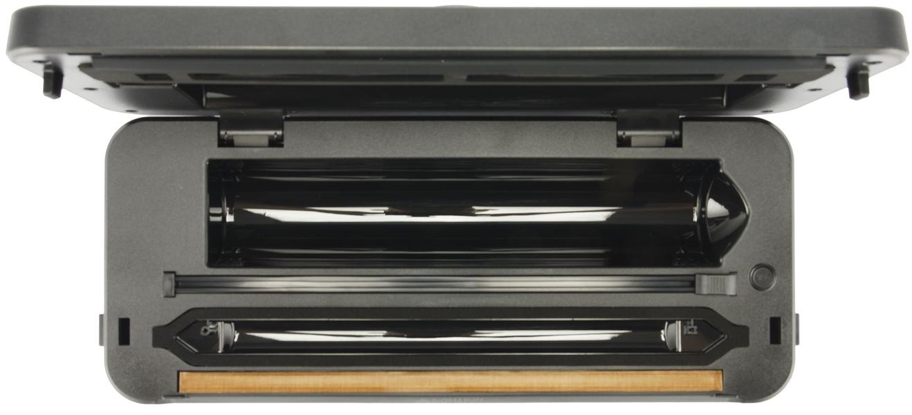 Чуть ниже встроенного резака находится рабочая камера. Именно здесь происходит процесс вакуумирования и запайки.