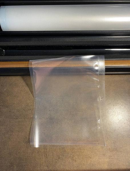 В комплекте поставки идет рулон с упаковочной пленкой. От него отрезаются нужной нам длины пленка, после чего с одной стороны их запаивают, таким образом формируется пакет для вакуумирования.