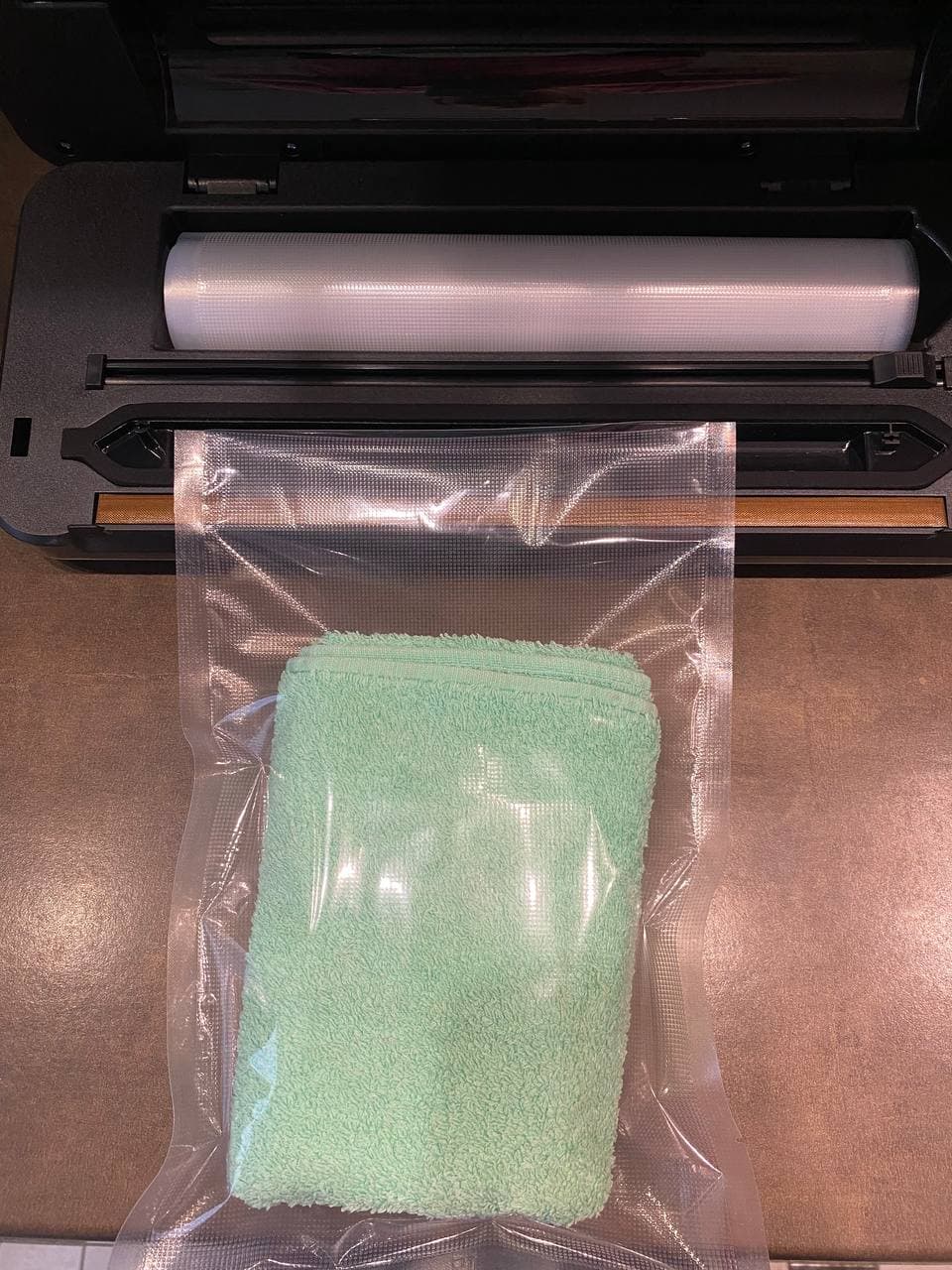 Процесс прошел без каких-либо проблем — прибор корректно выполнил вакуумацию, после чего аккуратно запаял пакет.