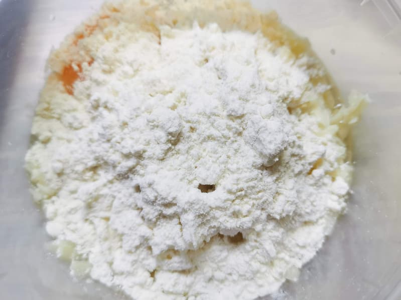 Для их приготовления нам понадобились: 100 г тертого сыра, 1 столовая ложка растительного масла, 1 яйцо, разрыхлитель, полстакана пшеничной муки, полстакана воды, соль.