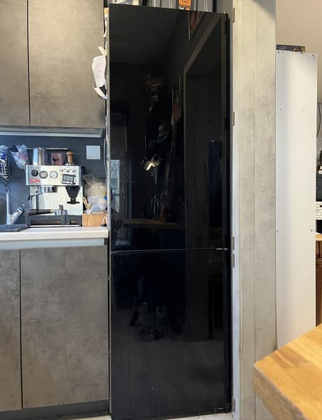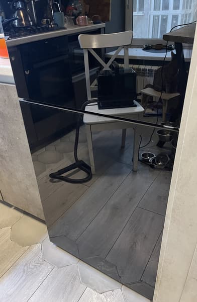 Чтобы проверить насадку для стекол, мы взялись за очистку холодильника со стеклянными панелями, которые, как и диван, столкнулись с творческими порывами детских рук.
