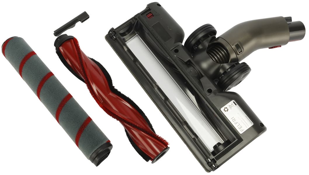У устройства обширная комплектация из 4 разных насадок, сменного ролика для основной моторизированной щетки и запасного HEPA-фильтра. На наш взгляд, это хороший бюджетный вариант для проведения регулярной качественной и быстрой уборки во всем доме.