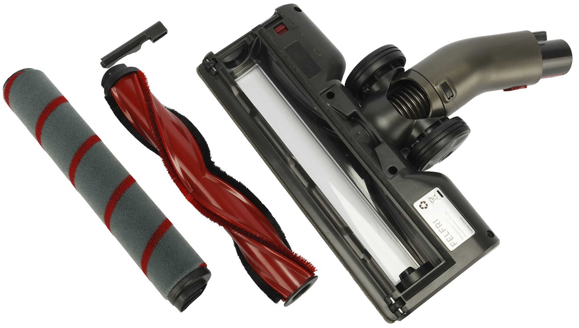 Для уборки твердых поверхностей производитель предлагает заменять основной ротор на мягкий красно-серый велюровый валик.