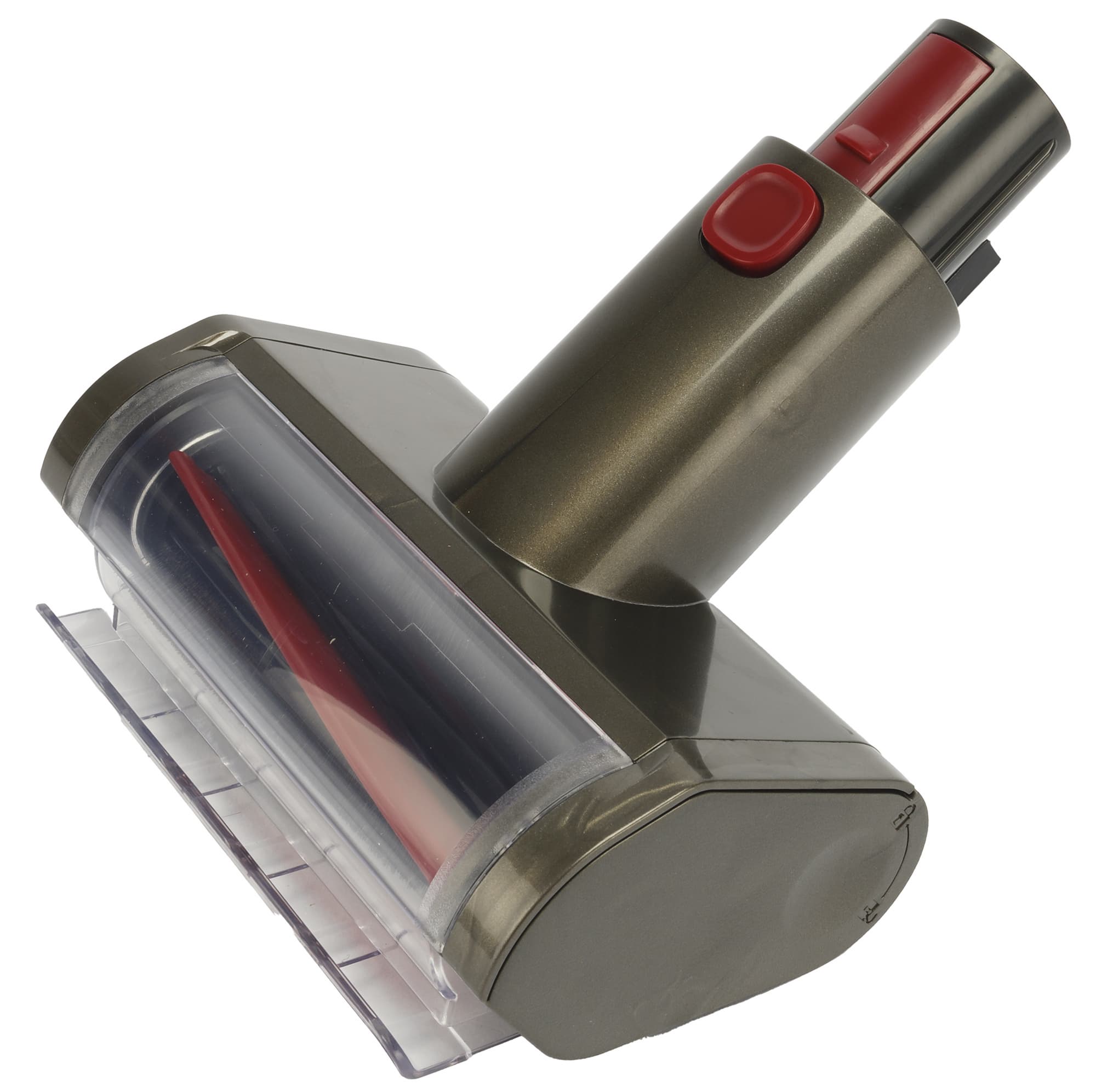 Первой рассмотрим насадку для чистки мягкой мебели, напоминающую собой мини-версию основной насадки. Эта моторизированная щетка 14,3×9 см предназначена для чистки матрасов, диванов, кресел, кроватей и т. п. Она не имеет подсветки, но в ней также установлен небольшой ротор с двумя рядами длинных щетинок и двумя резиновыми лопастями.