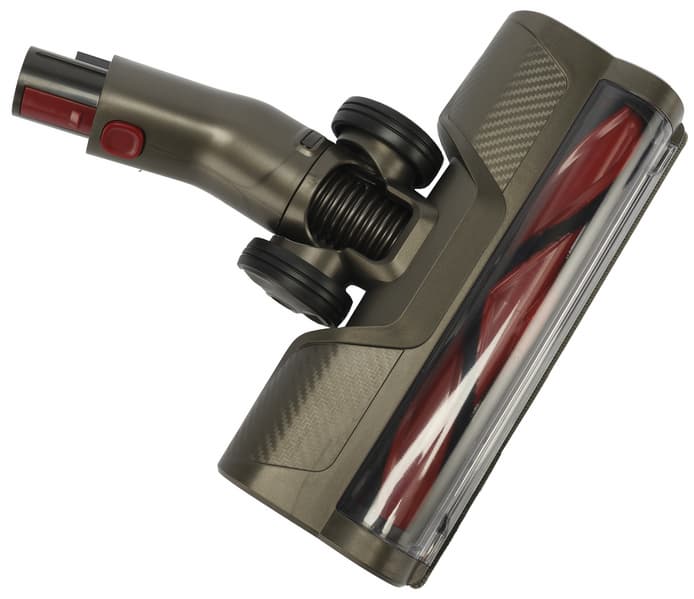 Конструкция основной щетки продуманная и хорошо поддается как движениям вперед-назад, так и более сложным маневрам с поворотами всего пылесоса или самой насадки.