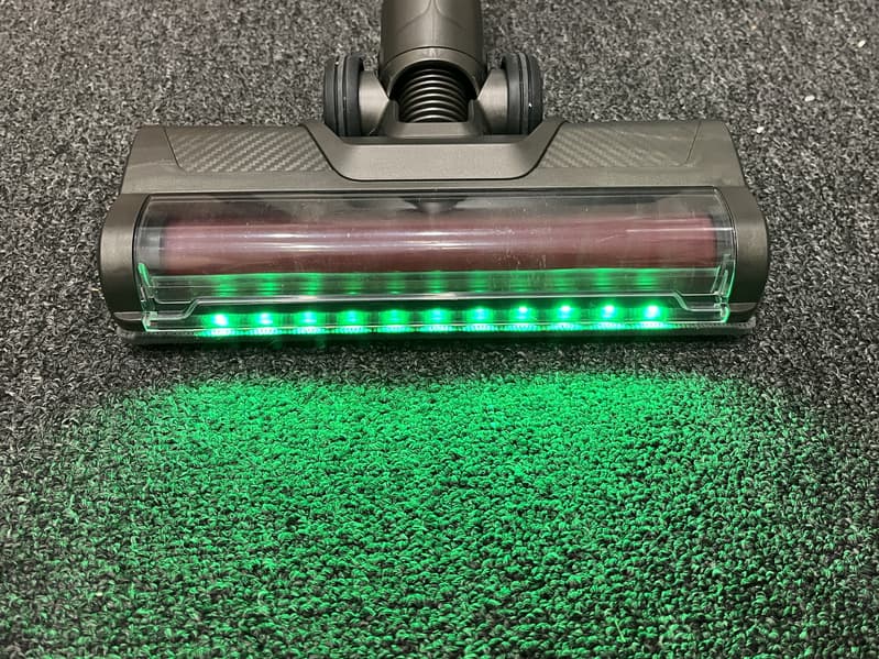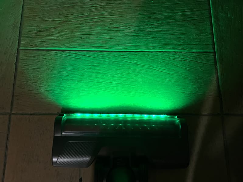 При уборке с хорошим освещением они не слишком актуальны, а вот при тусклом освещении или в темноте яркий зеленый свет отлично обозначает весь мусор в пределах 25-30 см перед насадкой.