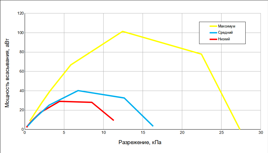 | Максимальная мощность всасывания | 101 аВт |