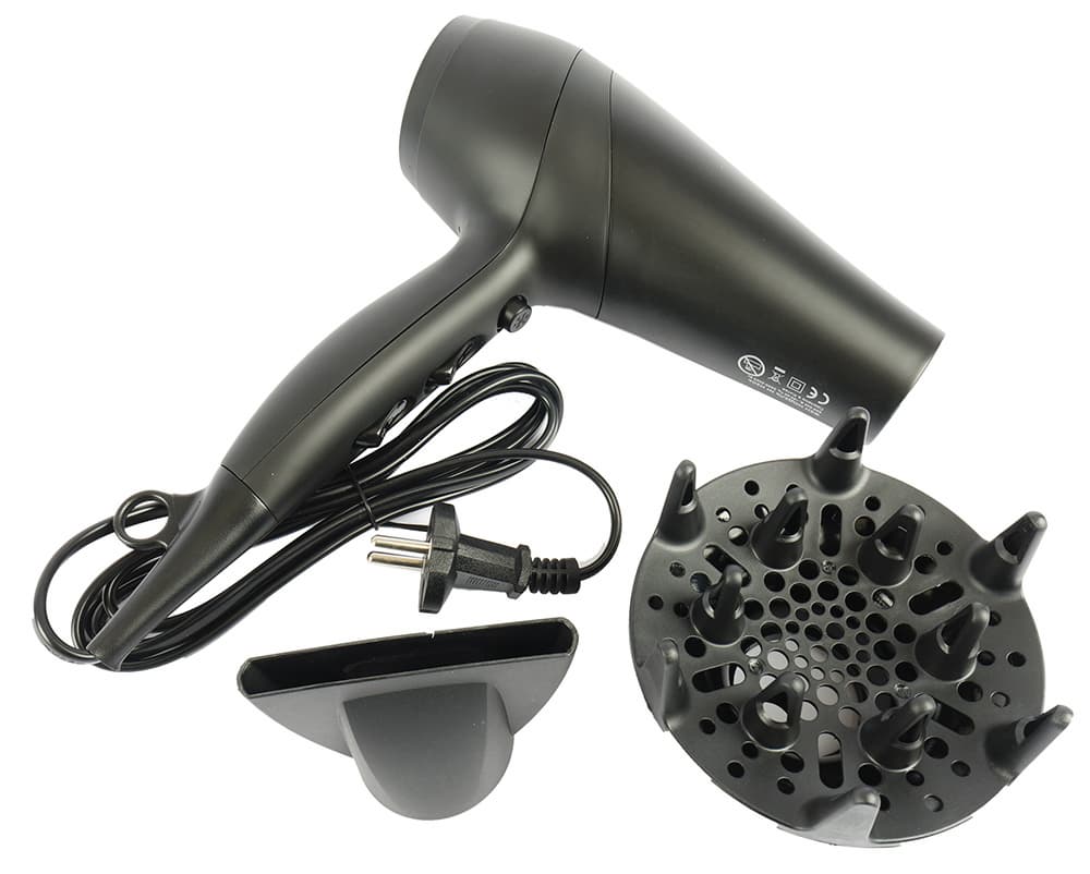 Благодаря диапазону регулировки нагрева можно подобрать оптимальную температуру, подходящую для самых разных волос без опасений нанести им вред. Во время теста на срабатывание защиты при перегреве фен быстро отключился, что является большим плюсом. Отметим также удобный легкий корпус аккуратной сборки, достаточно длинный шнур с петлей для подвешивания, дополнительные насадки в виде концентратора и диффузора и доступную стоимость прибора.