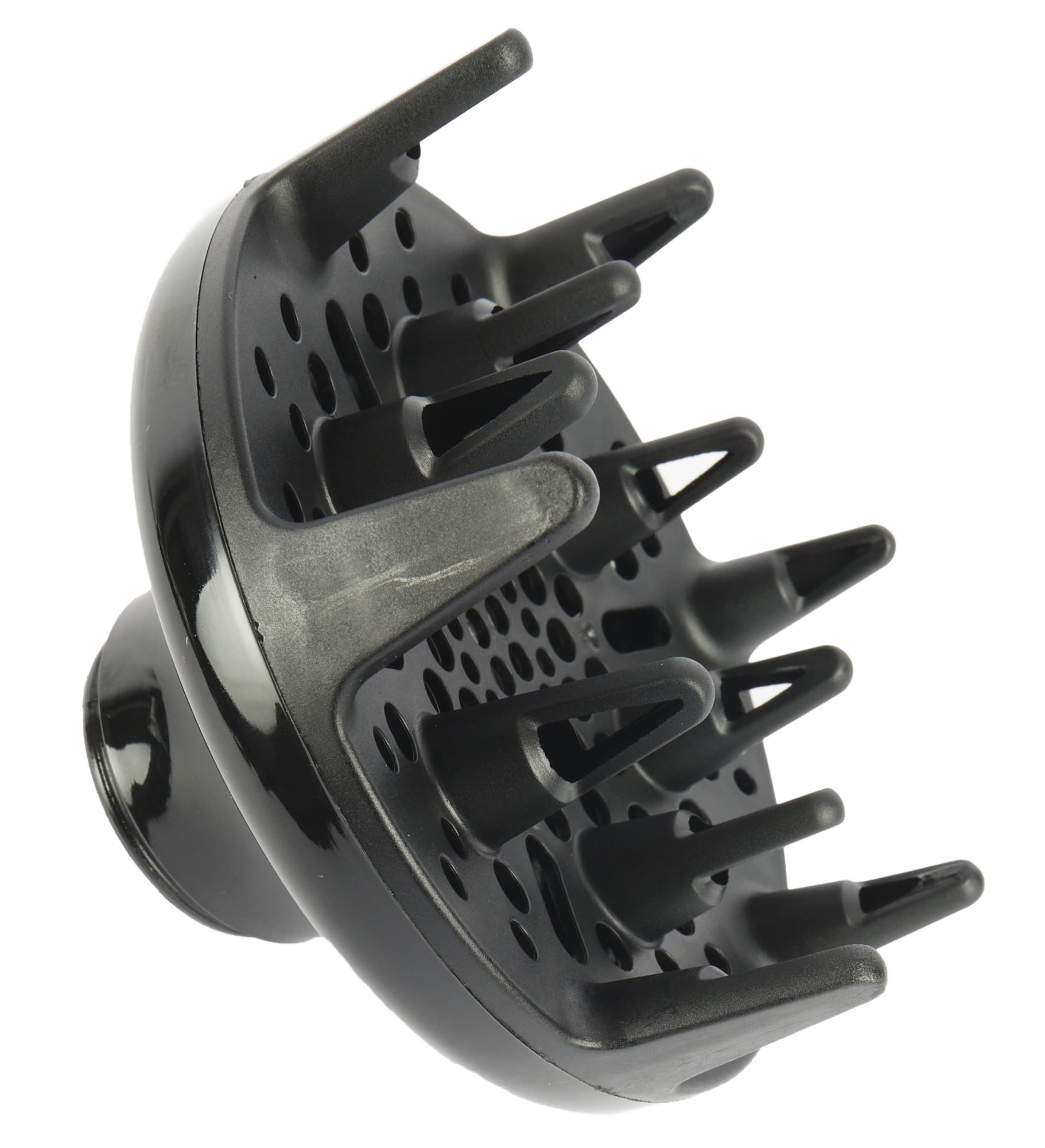 Диаметр диффузора составляет 11 см. Форма перфорированной чаши слегка вогнутая. Пластиковые шипы высотой 3 см на концах имеют отверстия для выхода горячего воздуха.