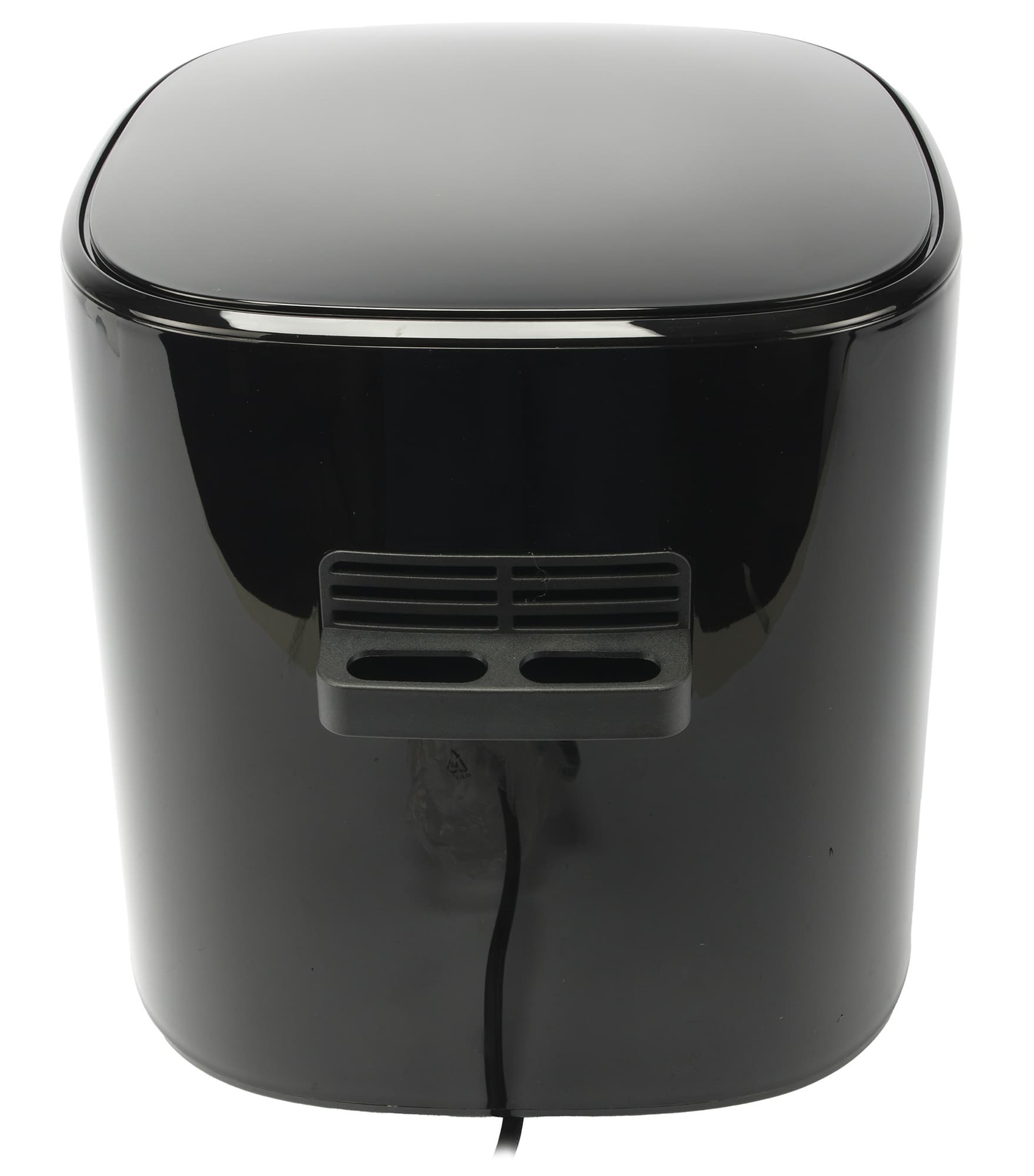 Корпус аэрогриля MTR AF-200 в форме цилиндра, едва заметно расширяющегося книзу, выполнен из черного глянцевого пластика. Отпечатки пальцев на покрытии не очень заметны, а вот пыль на нем собирается довольно быстро.