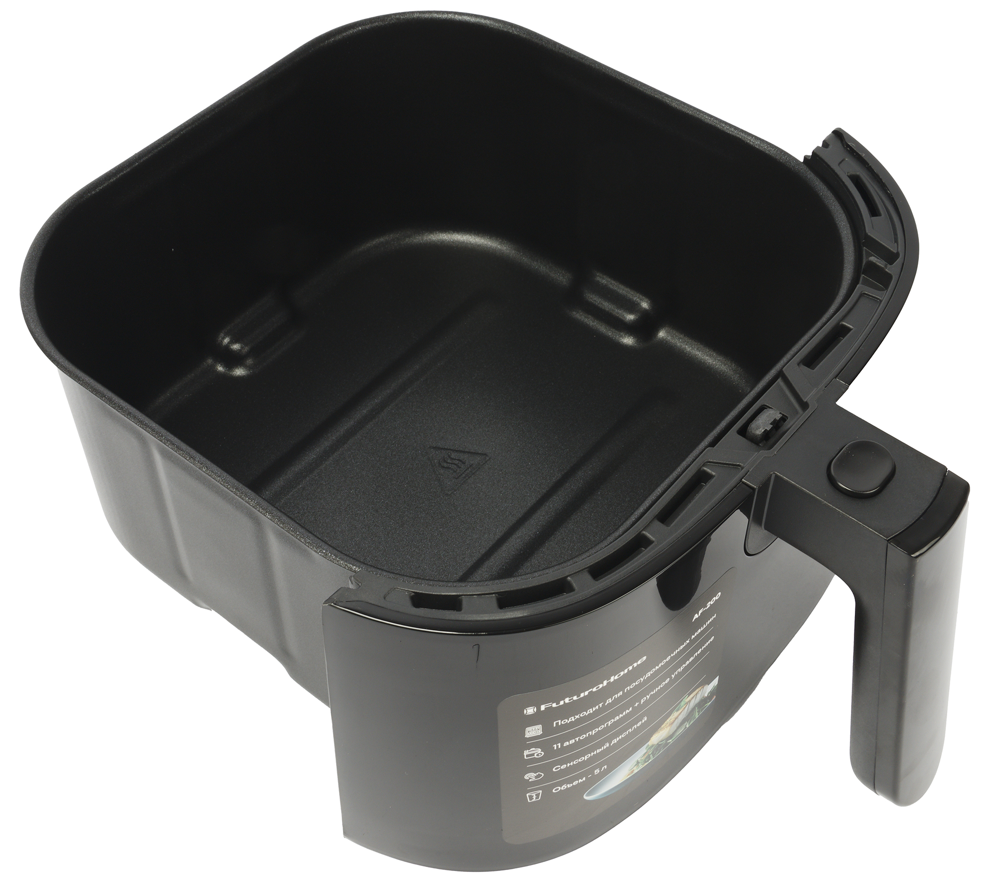 Если во время готовки вытащить корзину из корпуса, прибор автоматически остановит нагрев и вентилятор. Как только корзина снова будет установлена внутрь, процесс возобновится автоматически.