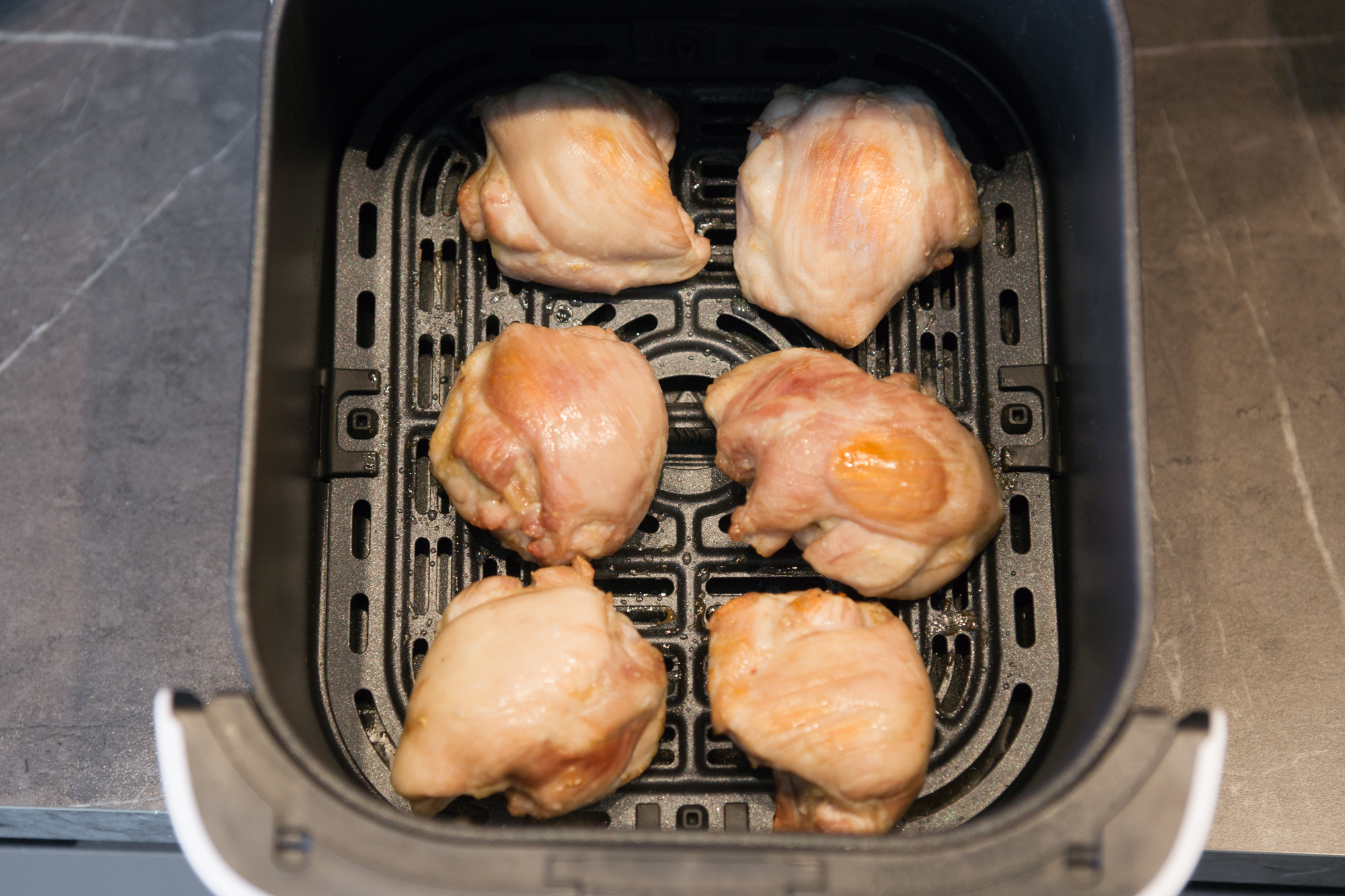 Аэрогриль работал на автопрограмме Курица с параметрами по умолчанию — 200 °C, 25 минут.