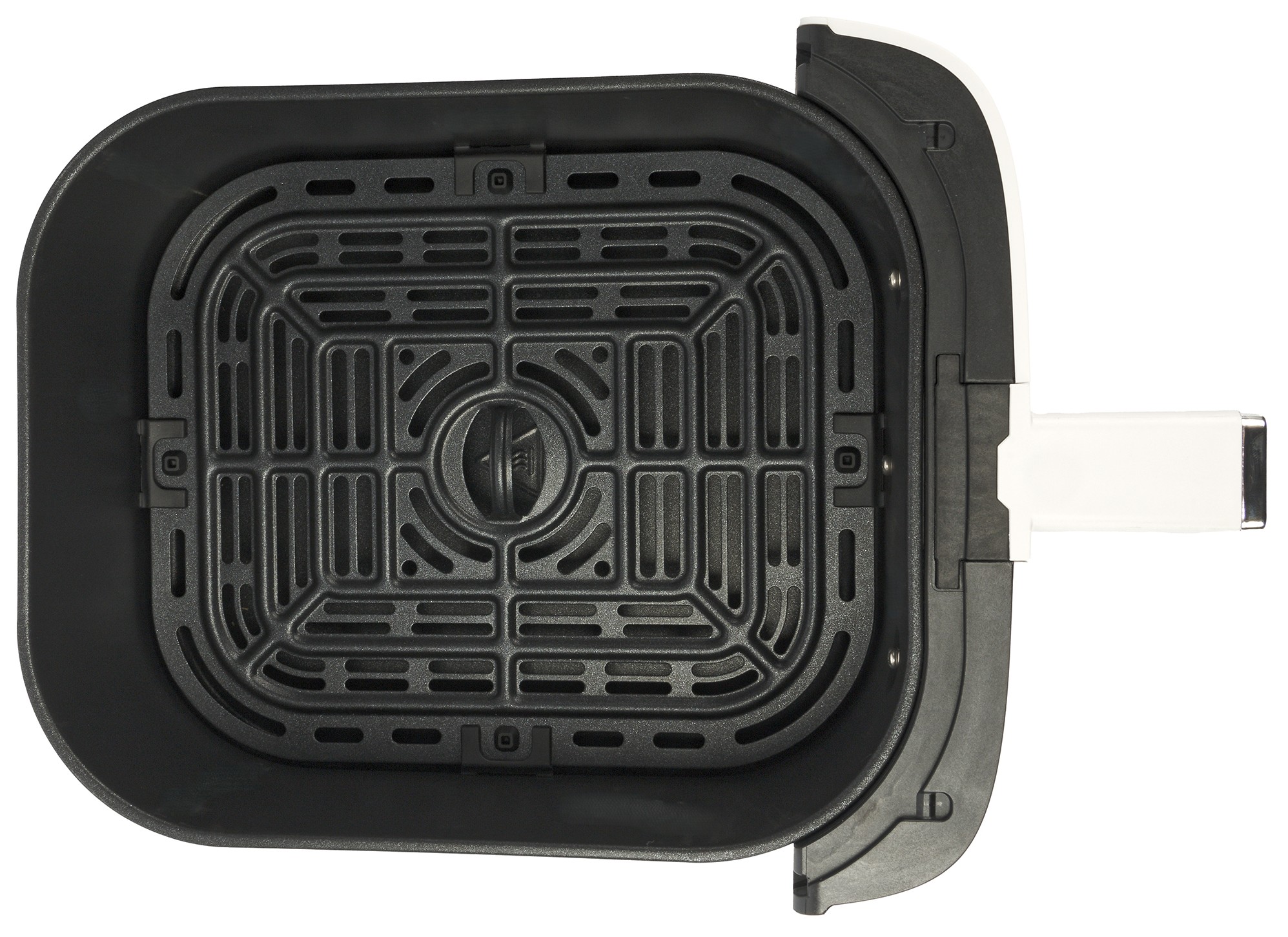 Дно и боковые стенки корпуса внутри изготовлены из металла. Сверху по центру размещен открытый нагревательный элемент. Над ним — вентилятор, который обеспечивает конвекцию во время работы аэрогриля.