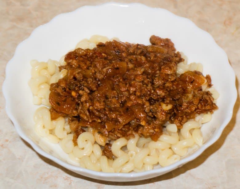 Затем из фарша был приготовлен соус Болоньезе и подан с обычными макаронами.