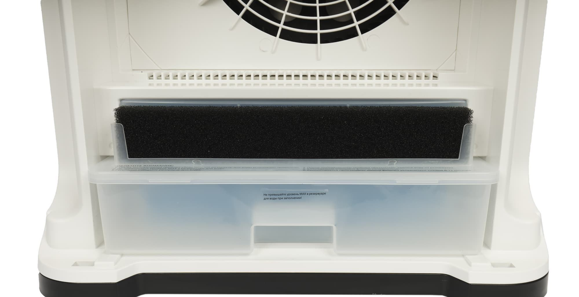 В нижней части корпуса располагается увлажняющий блок из полупрозрачного пластика.