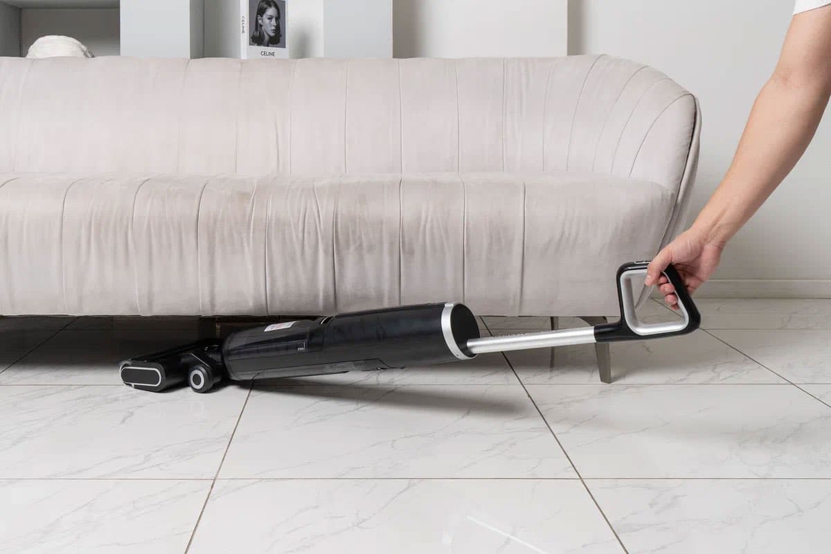 Несмотря на габариты, он достаточно маневренный, однако очистить с его помощью пол под невысокой кроватью или шкафами не получится — эти места придется убирать вручную или с помощью других устройств во время большой уборки. Благодаря особенностям конструкции и движения вес Garlyn Aqua Max 5 совсем не ощущается. Даже шестилетний ребенок с большим удовольствием управляет этим моющим пылесосом.
