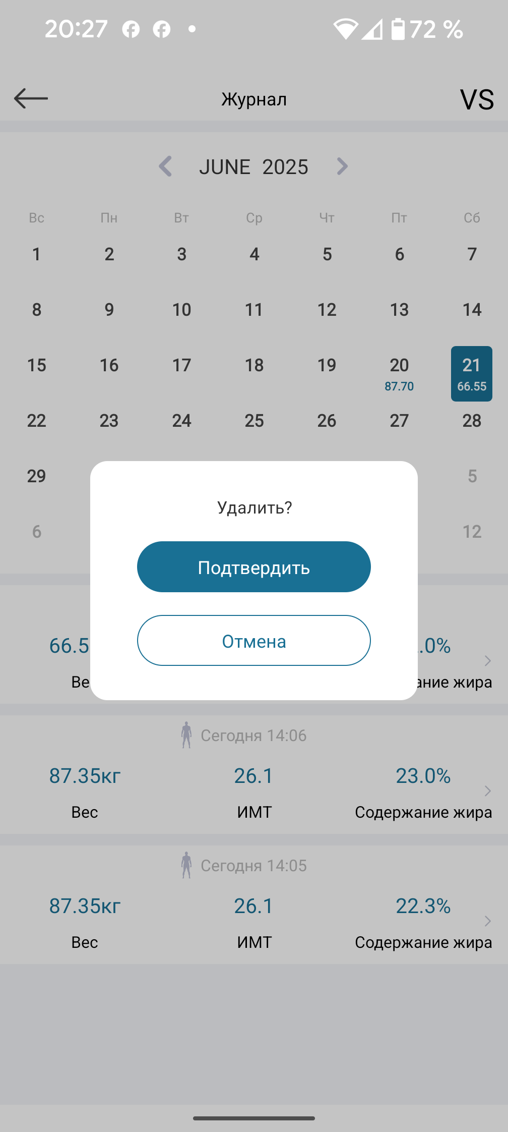 Если у весов несколько пользователей, это может привести к неудобной ситуации: к примеру, если прибором воспользовался гость, об этом будут оповещены все члены семьи, имеющие доступ к приложению. В таком случае в журнале взвешиваний предусмотрено удаление ошибочно сделанных записей.