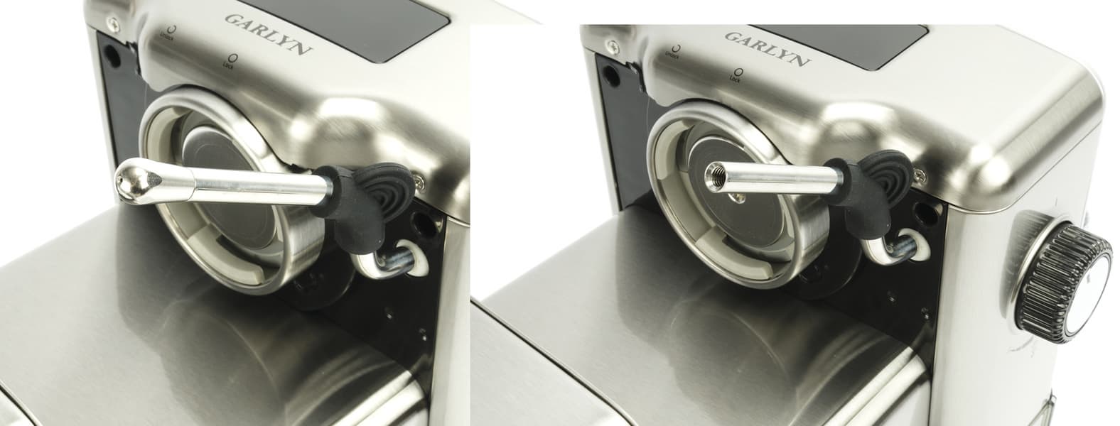 Как и у большинства аналогичных устройств, рожок Garlyn C60 устанавливается ручкой влево и затягивается движением на себя. Под ним можно разместить чашку высотой до 9 см.