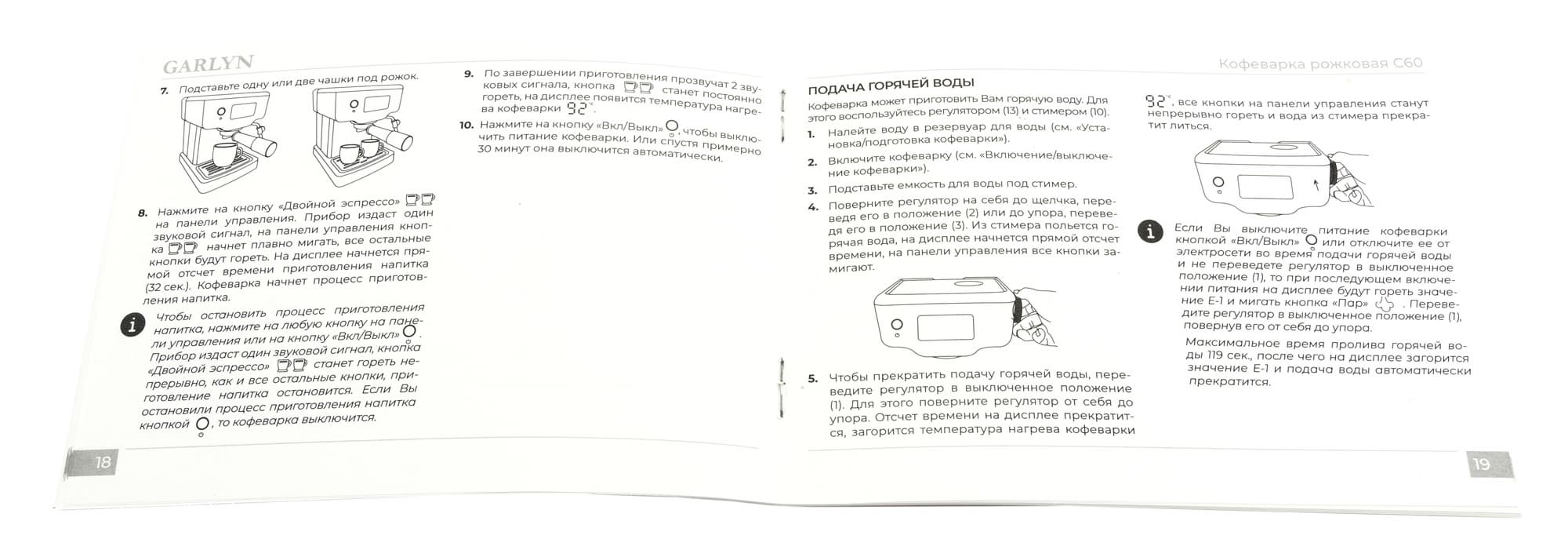 В режиме подачи горячей воды за 45 секунд кофеварка прольет около 210 мл воды. Температура в кружке составит 86 °C.