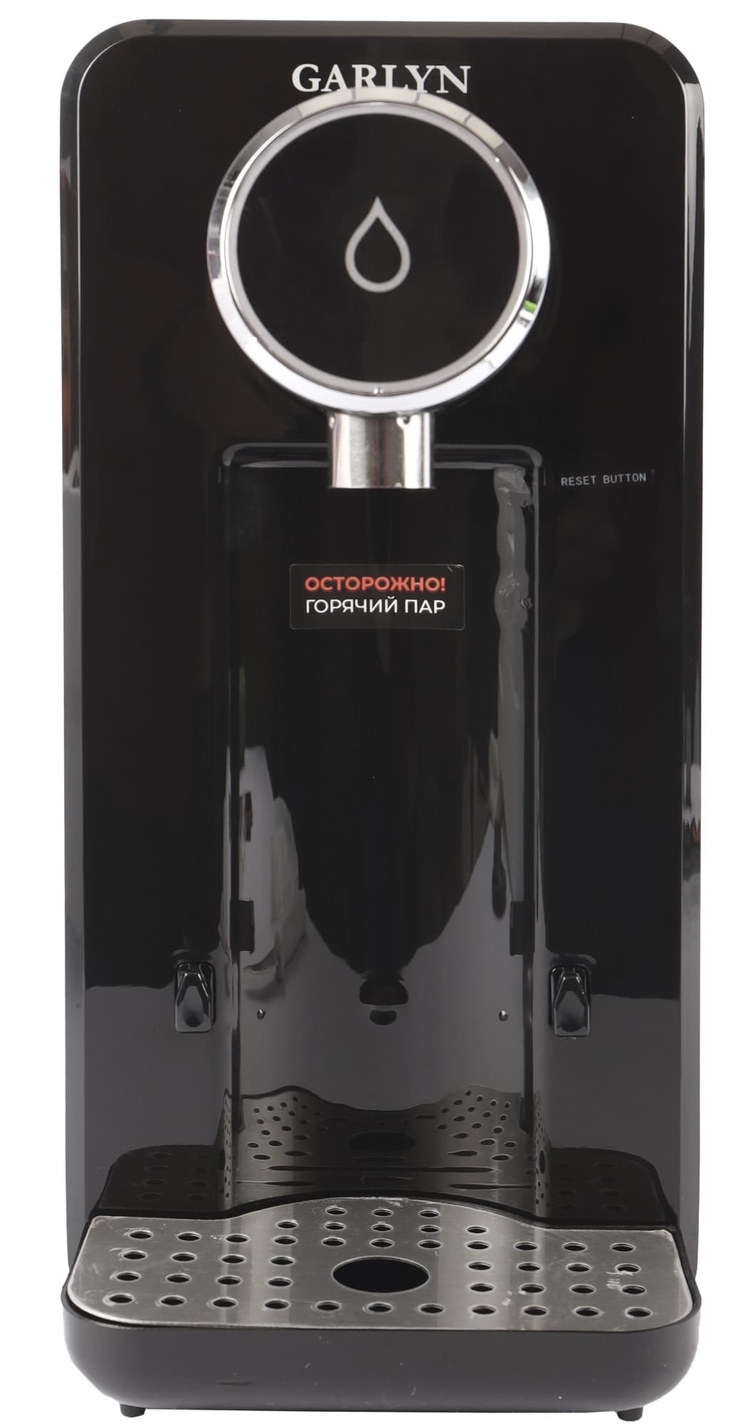 Черный корпус выполнен из пластика. При сборке вам потребуется установить поддон для капель на удобную для вас высоту: на уровне основания прибора или выше, к носику.