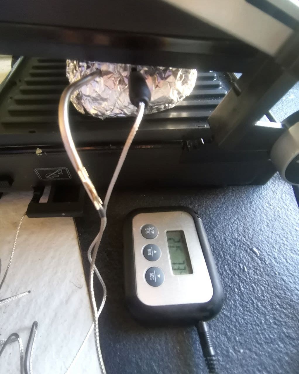 При подключенном термощупе, в режиме приготовления мяса температура щупа отображается в верхней строчке вместо температуры верхней панели.