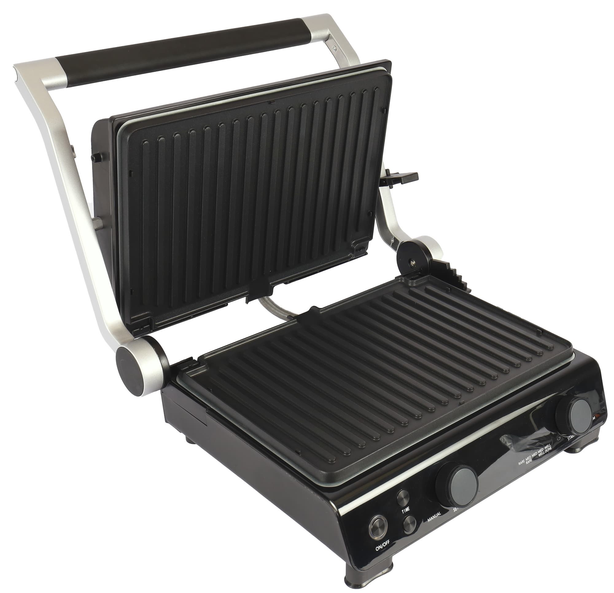 За счет мощности, благодаря равномерному нагреву панелей, возможности установки разной температуры верхней и нижней панелей и наличию термощупа прибор позволяет добиться профессионального качества приготовления пищи, создавая идеальные блюда, сохраняя естественные соки и ароматы продуктов. Управление грилем организовано очень просто и интуитивно. Сменные панели взаимозаменяемы, легко интегрируются в корпус, обладают отличной теплоемкостью и антипригарным покрытием.