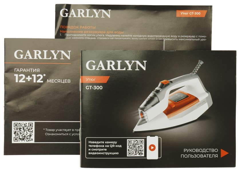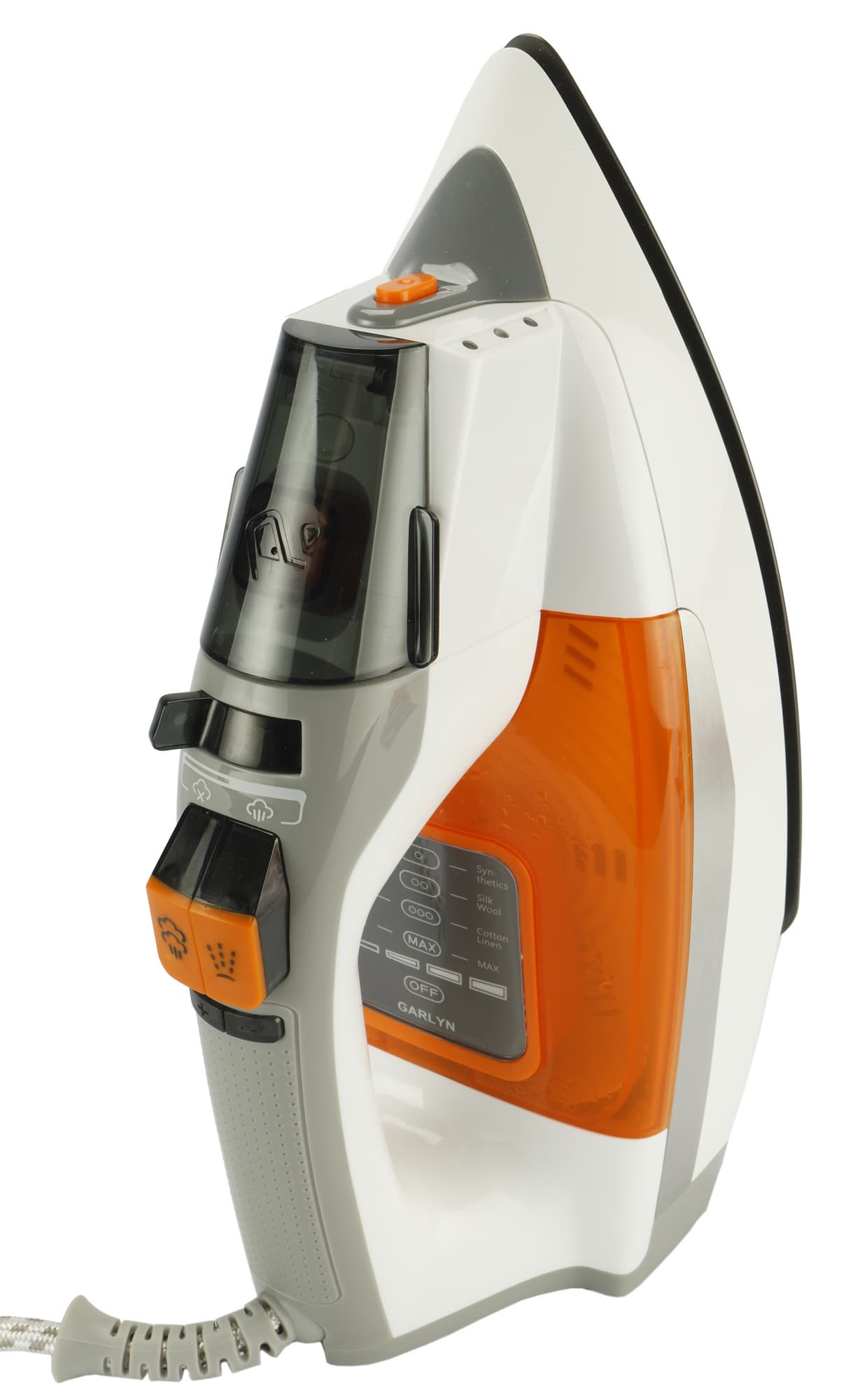 Утюг Garlyn GT-300 выглядит и ведет себя как обычный представитель своей ниши, и по качеству изготовления и сборки, и по функциональности. Прибор оснащен множеством основных и дополнительных функций: тремя уровнями постоянной подачи пара, регулируемым нагревом подошвы, разбрызгивателем, создающим чрезвычайно мелкие брызги, мощным паровым ударом, который позволяет использовать утюг в качестве вертикального отпаривателя, системами «Капля-стоп» и самоочистки, а также автоматическим отключением при бездействии.
