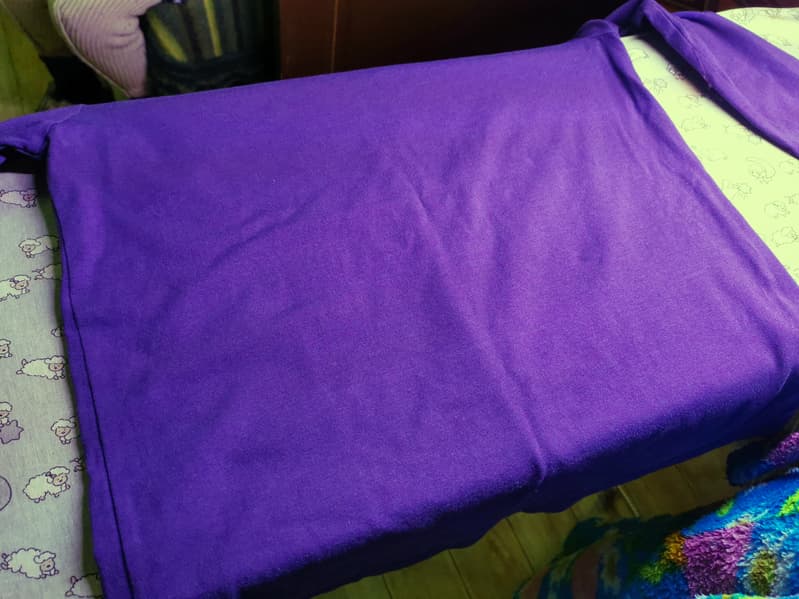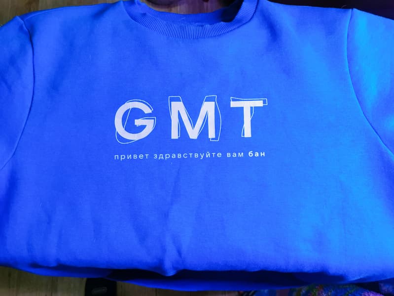 Мы взяли свитшот с составом 80% хлопка и 20% полиэстера. Сам по себе он не сильно помят, благодаря держащей форму синтетике, но всё же выглядит не очень аккуратно.