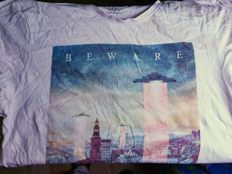 В качестве первого теста мы взяли белую хлопковую футболку с крупным принтом.