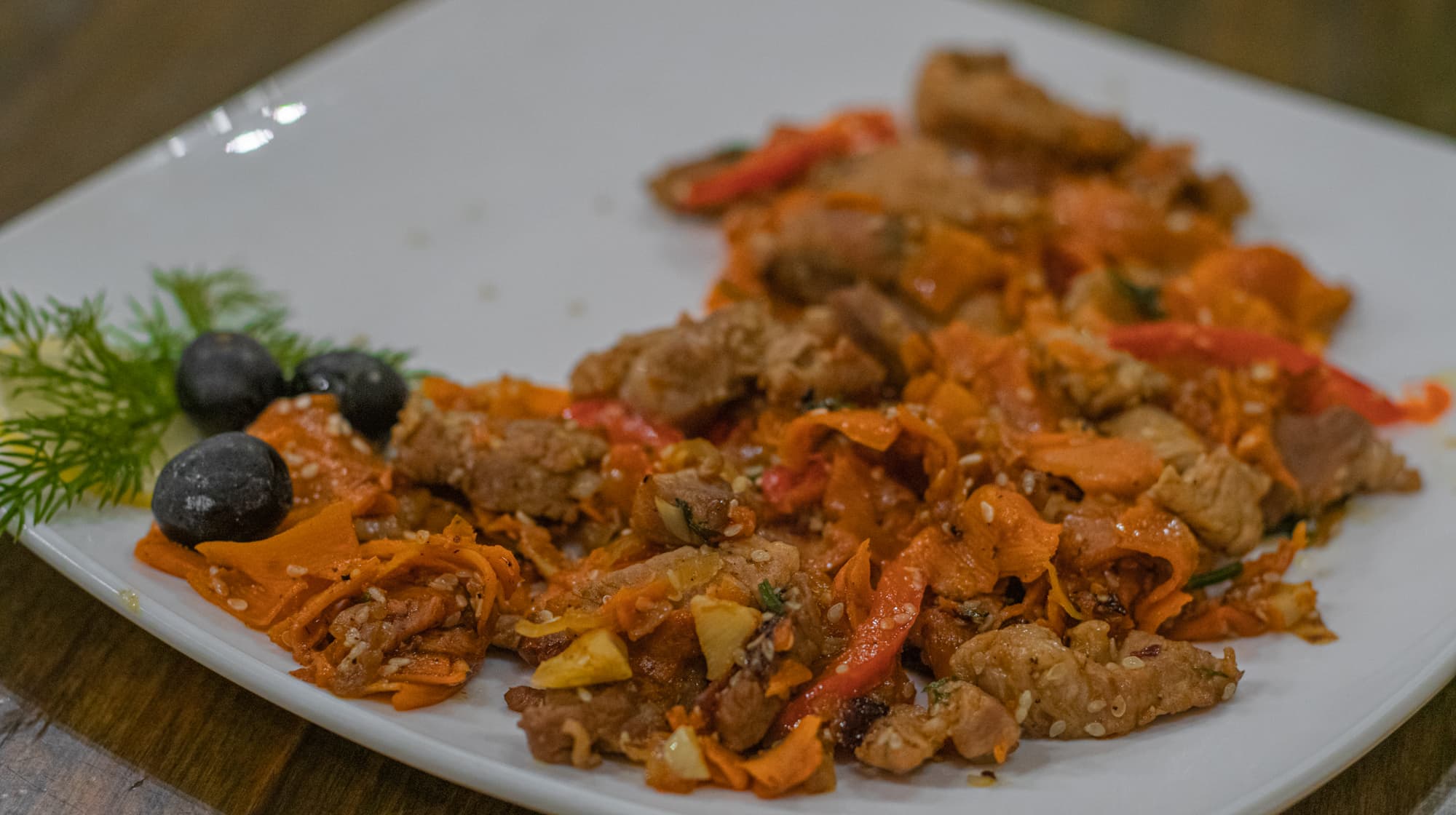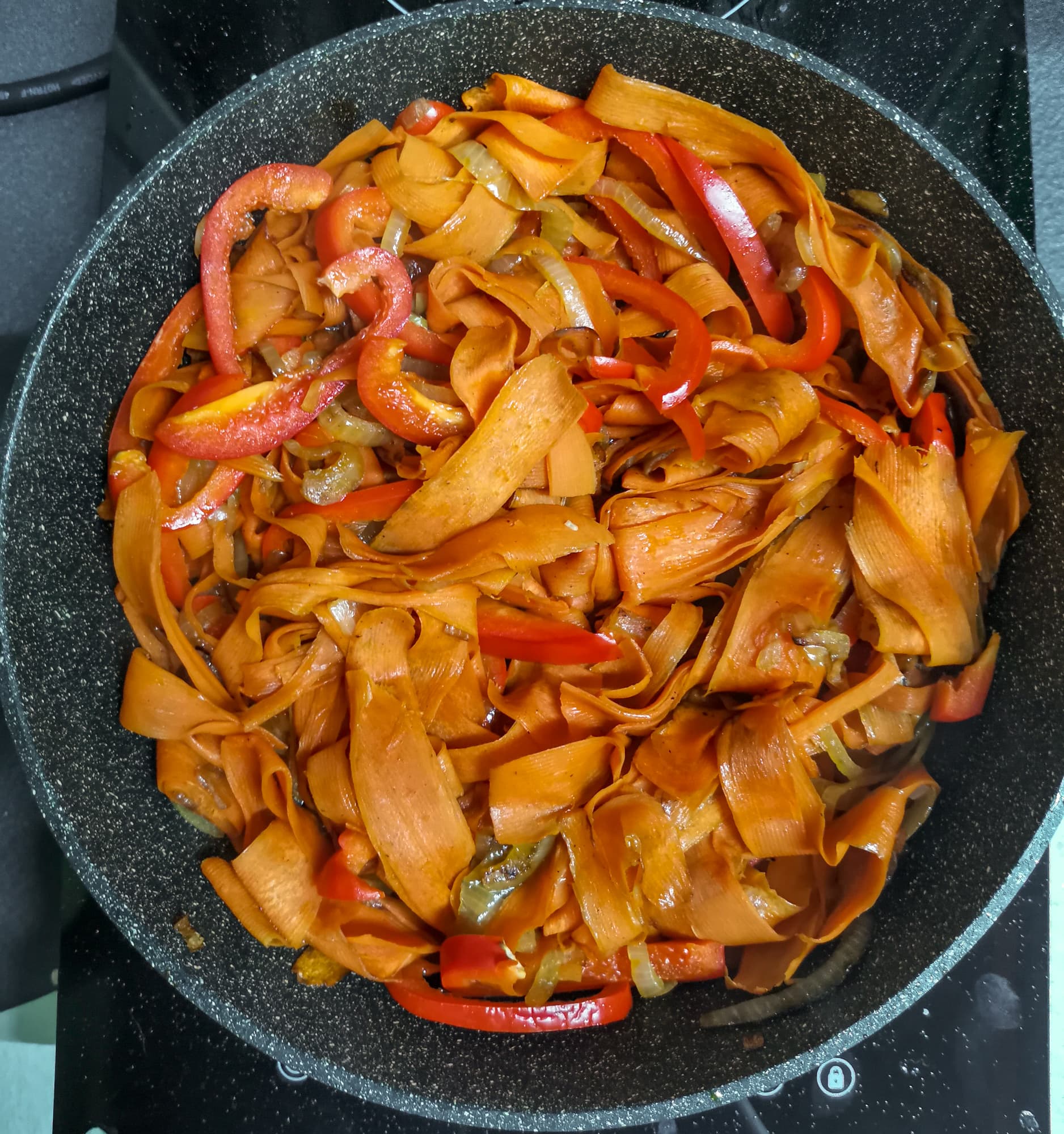 К нему добавили морковь, перец сладкий и перец острый.