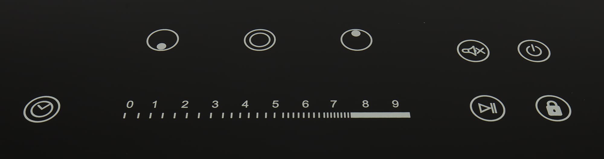 Приборная панель располагается спереди плитки и состоит из сенсорных кнопок управления, обозначенных пиктограммами и ряда в виде черточек, которые служат для установки мощности или таймера.