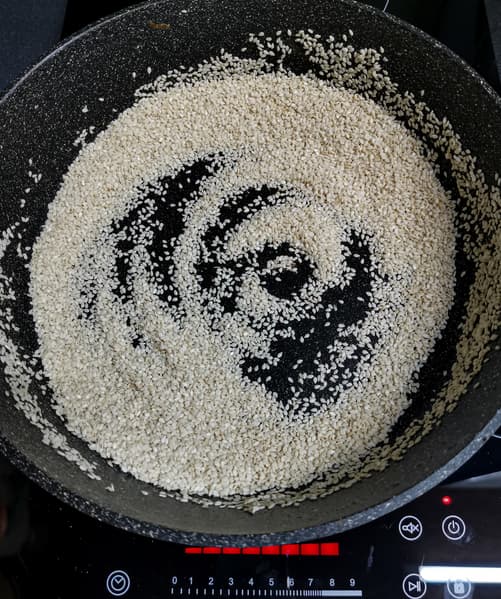 Сначала мы обжарили кунжут на максимальной мощности