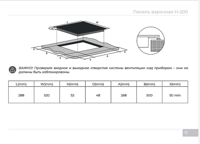 | Габариты встраивания | 268×52×500 мм |