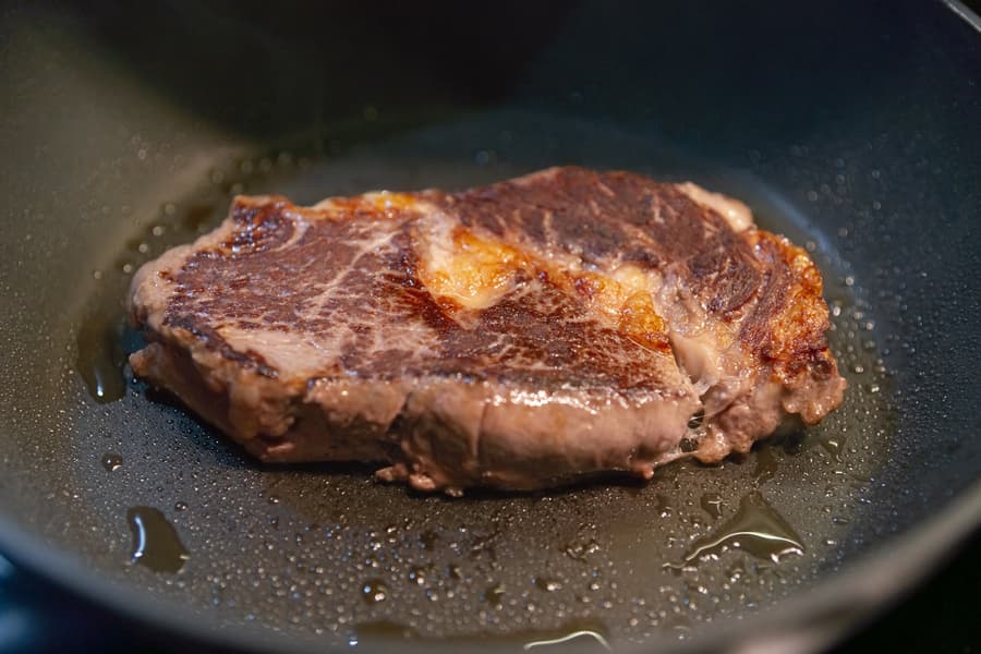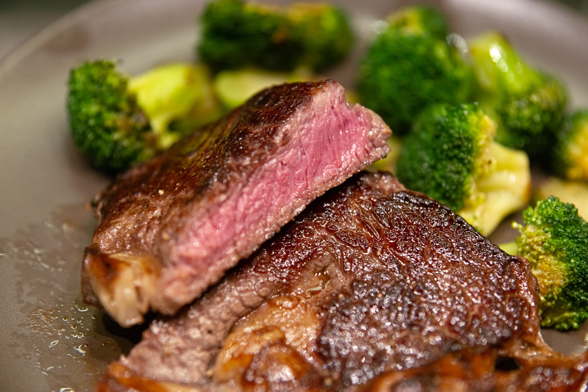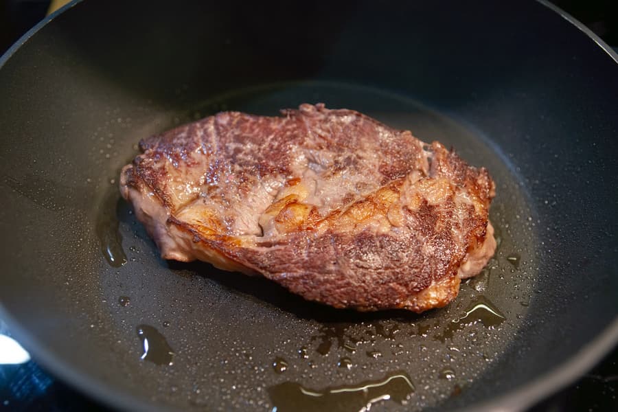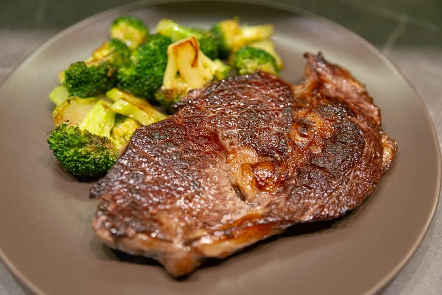 Стейки также жарились быстро и правильно — поверхность быстро запечатала сок внутри мяса и приобрела красивую корочку.