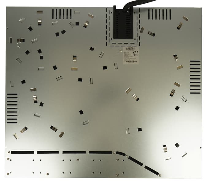 Нижняя часть устройства полностью из оцинкованного железа. Весит Garlyn H-400 около 8 кг. На дне находятся вентиляционные отверстия и технические прорези, а также наклейка с информацией об изделии.